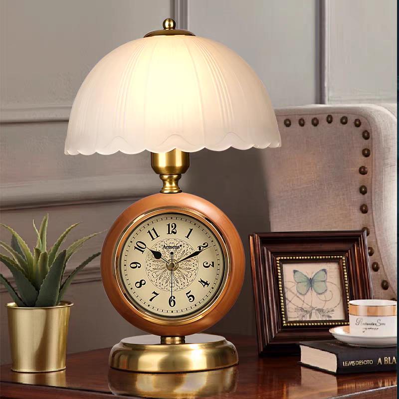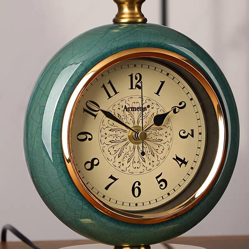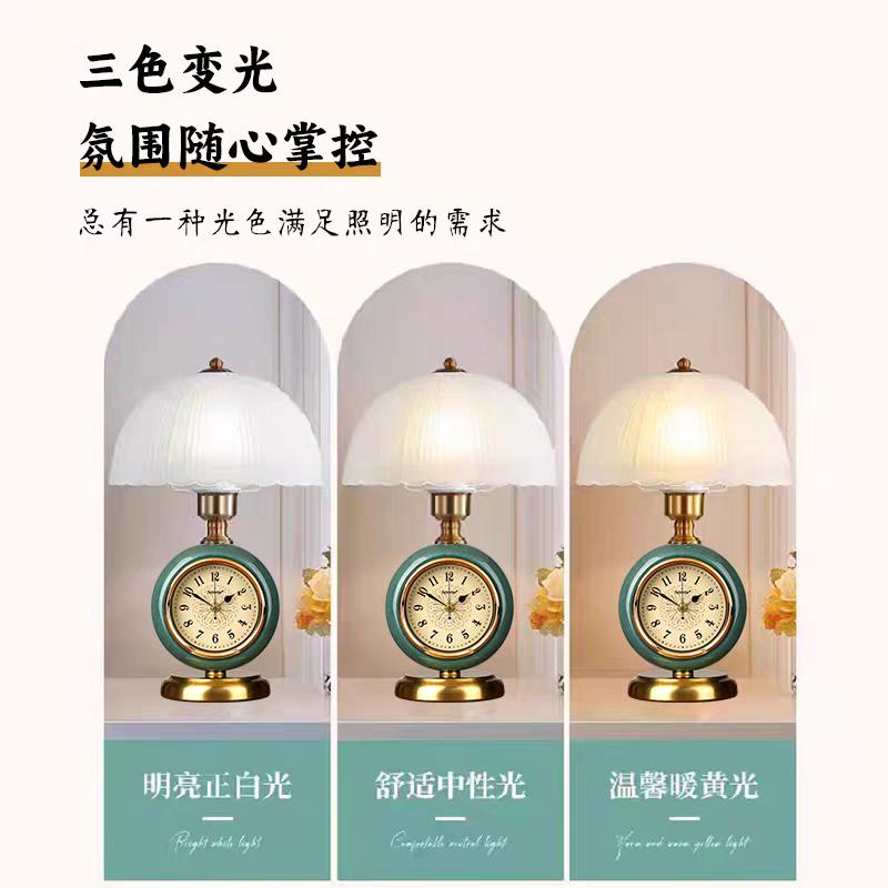床头台灯卧室静音钟表陶瓷可调光灯欧式创意简约家用书房台灯钟表