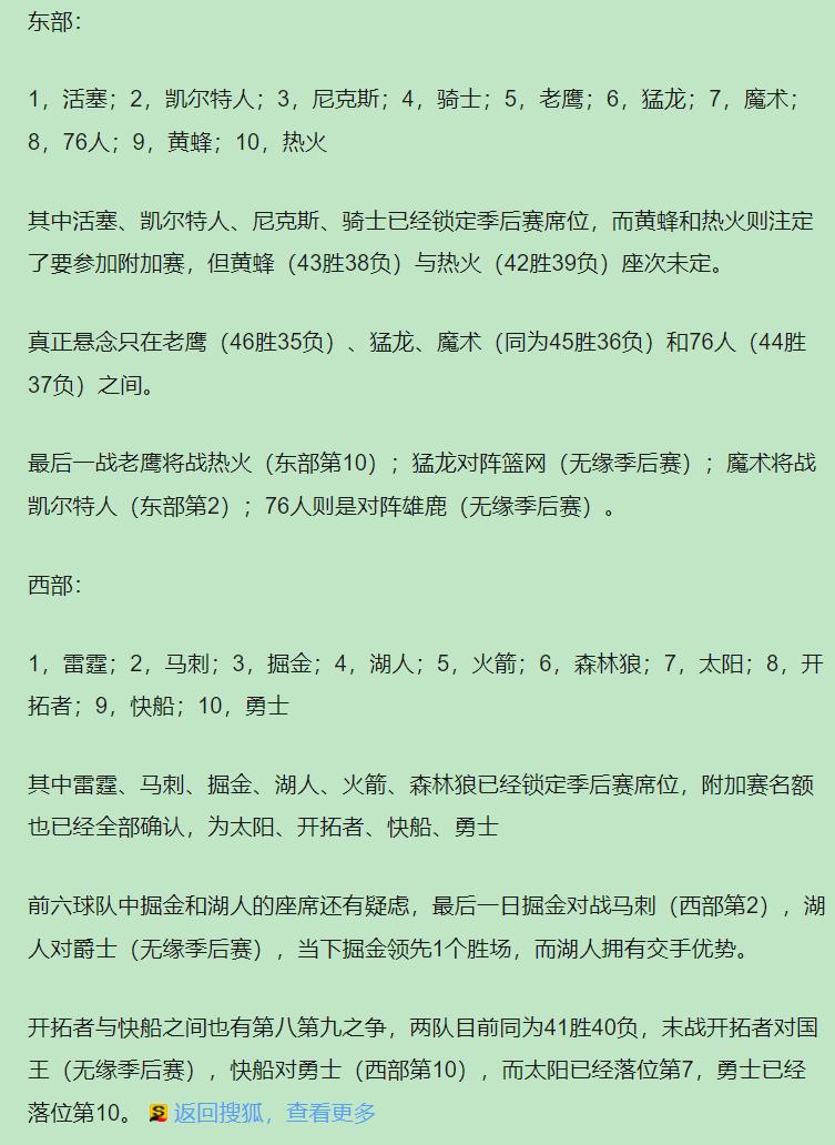 所以你看,收官战从来不是"无欲无求",它是把算计和血性分开摆盘。有的球队在下大棋,有的球队在玩命跑,各有各的活法。篮球这东西,从来不仅是身体和篮筐的对话,更是脑子与命运的博弈。这最后一天,有人藏锋,有人亮剑,都是真章儿——只不过有人赢在今日,有人赢在未来。最后1日:掘金湖人争三开拓者快船争八 东部四队抢两席