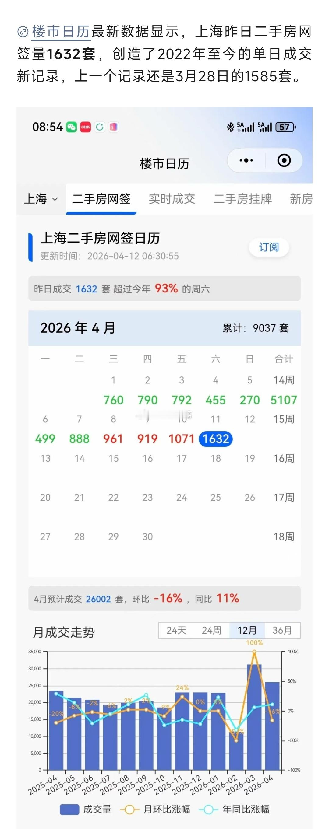 楼市第一线【04月12日早上好☀️】昨天上海二手房成交1632套,再次打破单日