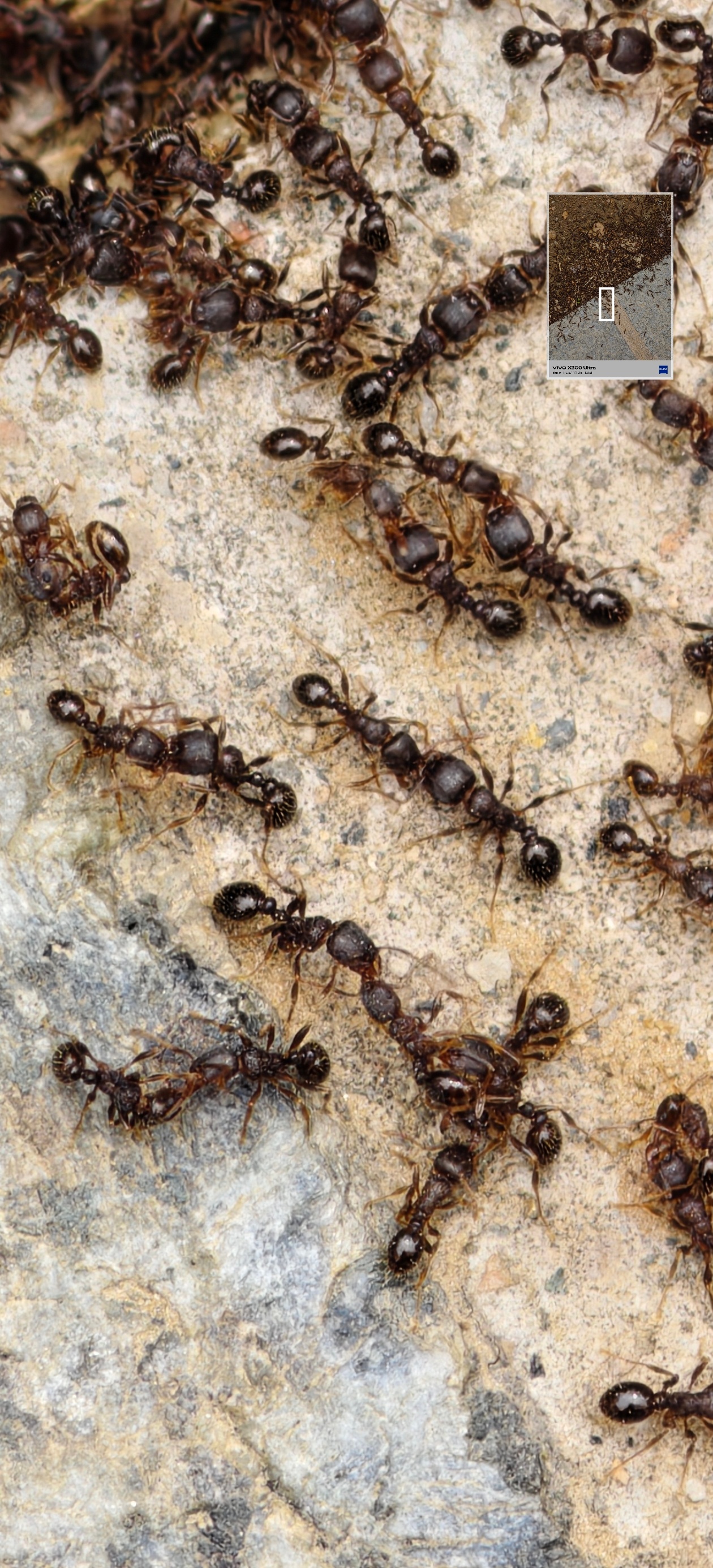 这是两群蚂蚁为了争夺领地。而发起的大规模战争,他们一对一厮杀,已经有很多战死的蚂蚁。照片由 vivo X300 Ultra 85毫米2亿像素模式拍摄。第一张是原图。第二张是细节