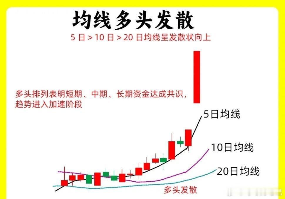 注意了!均线是一个最为基础的指标,用途很广。不管你是新手还是老手,均线系统,可以说最先接触的到一个技术指标。而今天,可可给大家带来八句均线口诀,涵盖了大部分重要均线走势,可以说是相当重要。还是老规矩,点赞收藏或评论六六六支持一下,可可每天分享炒股干货,以免以后想温习找不到了1. 五日线不跌破股价在上涨趋势了,股价在五日均线上方运行,股价开始回调,但是在均线附近开始止跌企稳,那怕是当天下探也能快速收回,说明此时属于短期强势股,多头控盘。2. 六十日线不穿60日均线代表中长期均线,股价一直处于60日均线下方运行,一直被均线压制,一直突破不了均线,说明此时市场空方比较强,多方很弱,一般出现这种形态,一般都是下跌趋势里3. 二十日线上穿20日均线上穿60日均线形成中长期趋势,随后往往会出现股价缩量回调,回踩20日均线,也是蓄势的一个形态,这一般会是主力吸筹或是洗盘4. 线上缩量阴股价在均线上方,不管是短期的5日均线还是20日均线,出现缩量小阴线,这种小阴线,不会去改变当下的趋势,一般是主力洗盘。5. 二十日线止跌股价在回调过程里,在20日均线附近开始止跌反弹,如果此时放出量能,那就说明20日均线有着比较强的支撑力量。6. 线下放量阳股价在均线下方运行,一直处于被均线压制,没有有效突破均线的压力位,在这种情况下,出现放量阳的出现,往往是短期的一个反弹,不能改变市场的趋势7. 均线粘合我们常用的5日均线、10日均线和20日均线,出现粘合,交织在起来,说明短中期的持仓成本基本差不多,市场处于横盘震荡的走势,市场还没有方向8. 均线多头发散5日均线、10日均线和20日均线出现,斜率向上,多头发散的形态,说明此时处于一个上涨趋势里,股价一直在均线上方运行。多方力量比较强好了!以上就是我们常见的8种均线走势,下方我准备了对应的案例图,建议牢记在心里。希望对大家有启发,也是最为基础的内容,一定吃透。我们下期内容再见股票股市财经