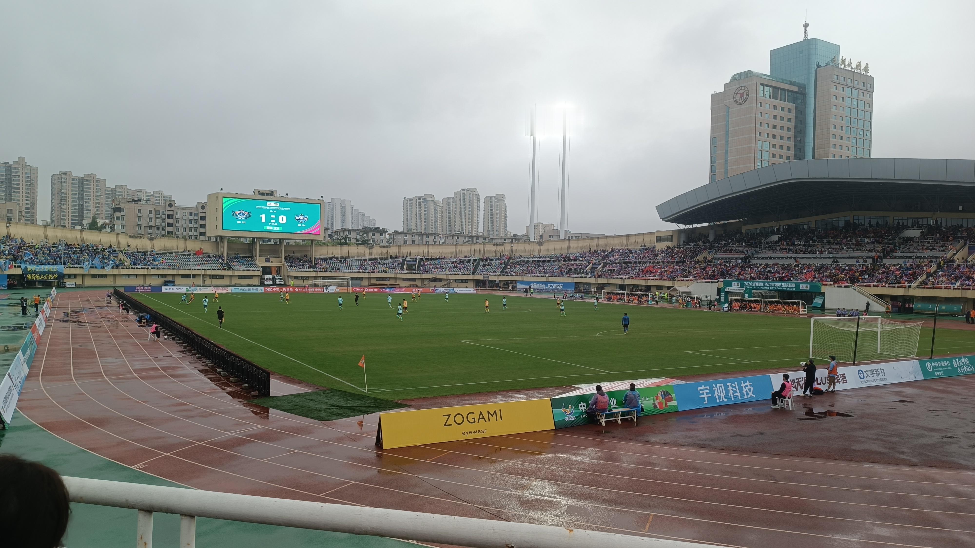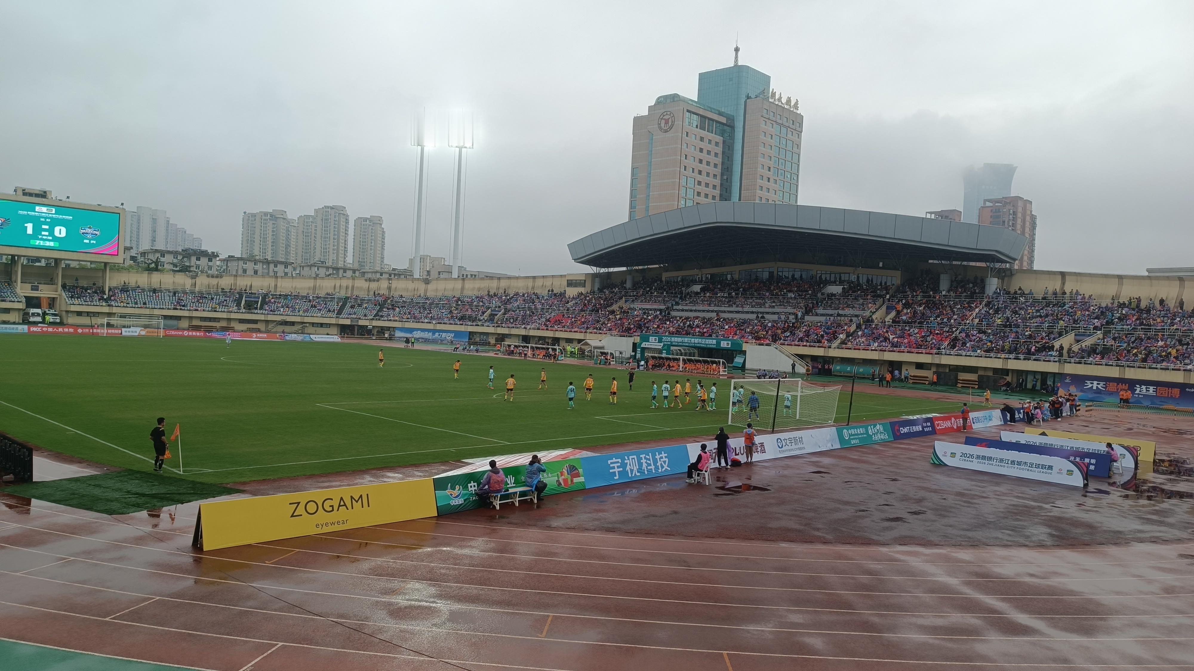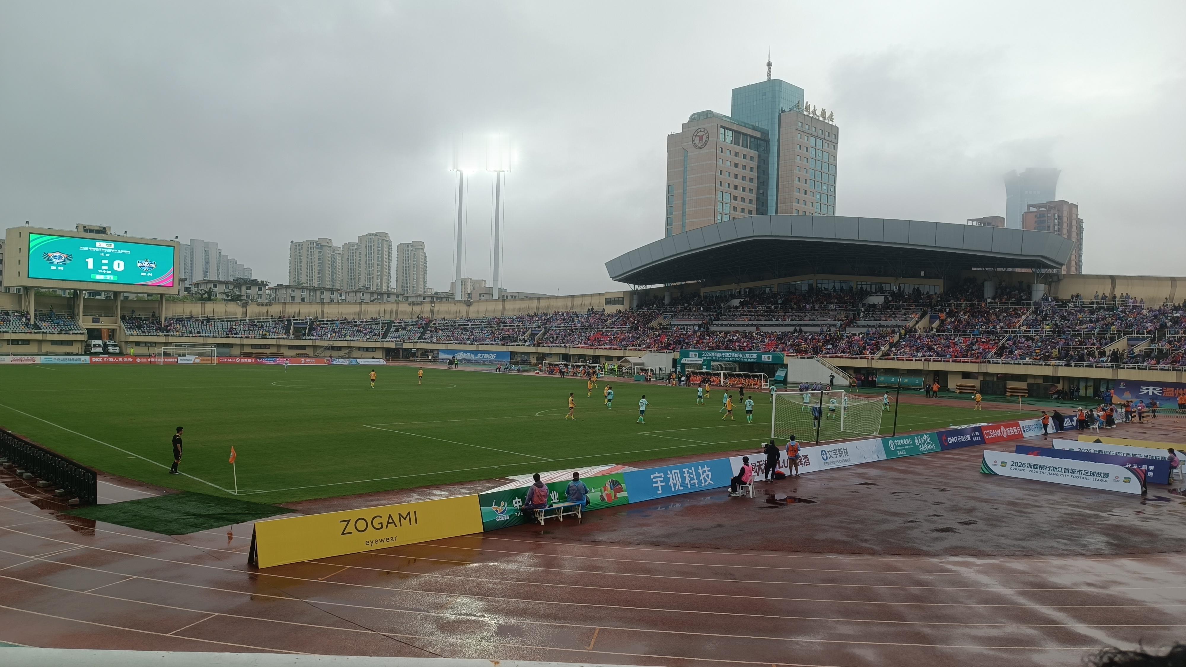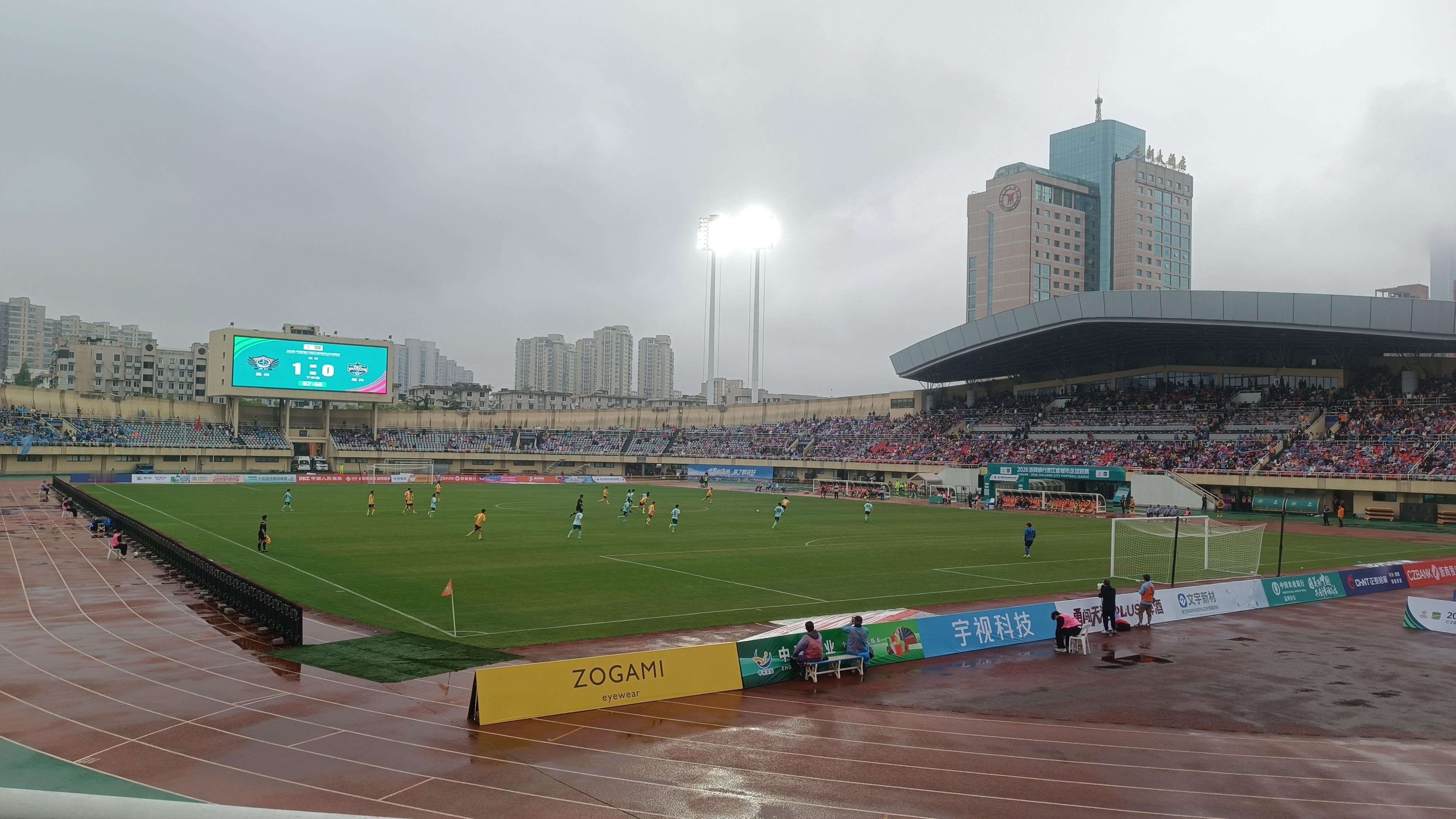 半场哨响,温州主场1:0小胜绍兴,雨水浸透看台,热情却未降温。球场灯光穿透阴云,球员在湿滑草地上拼抢如风,观众席呐喊声浪不减。背景高楼静默守望,见证这场浙南德比的激烈角逐。记分牌定格1:0,悬念留待下半场。浙江足球的热血,在雨中更显纯粹——为家乡球队喝彩,为吴越杯激情燃爆温州!⚽️🌧️ 温州·温州体育中心