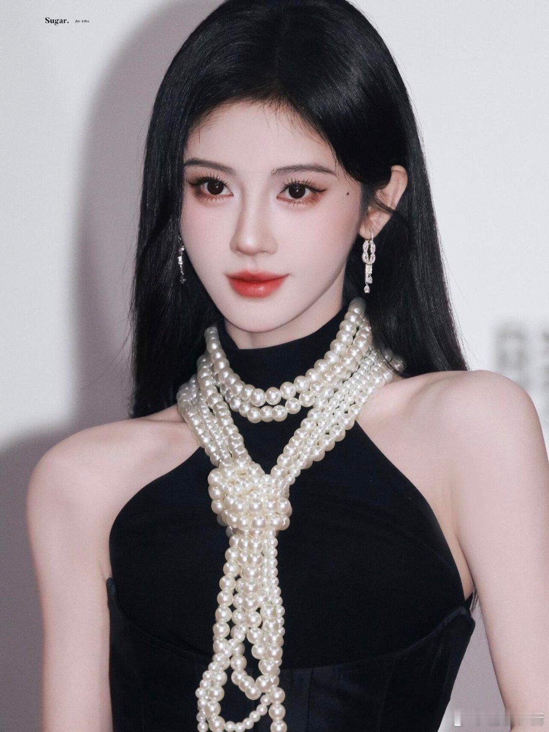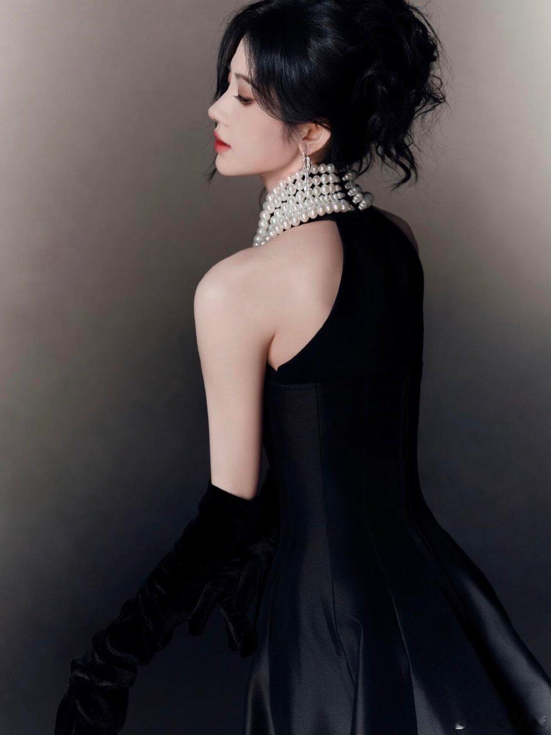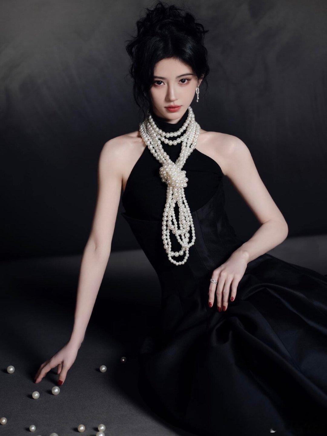 鞠婧祎的黑天鹅造型绝了!叠戴大小珍珠项链瞬间点亮整身礼服,优雅感拉满~