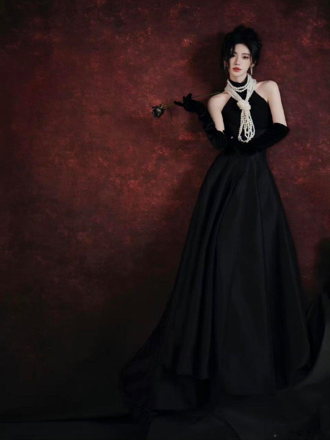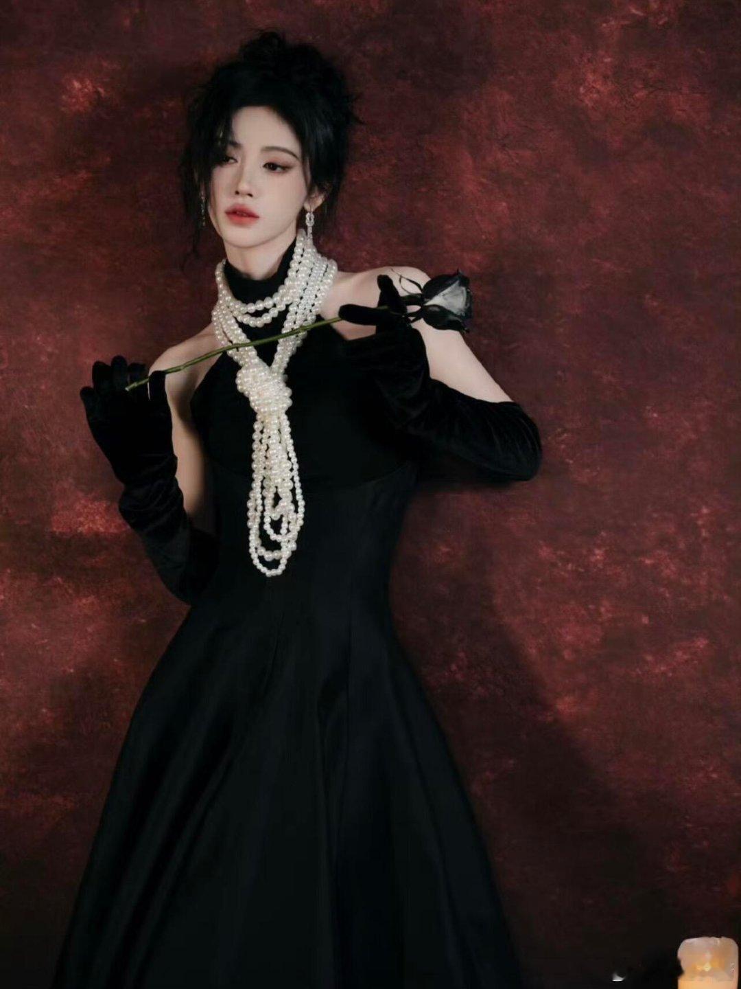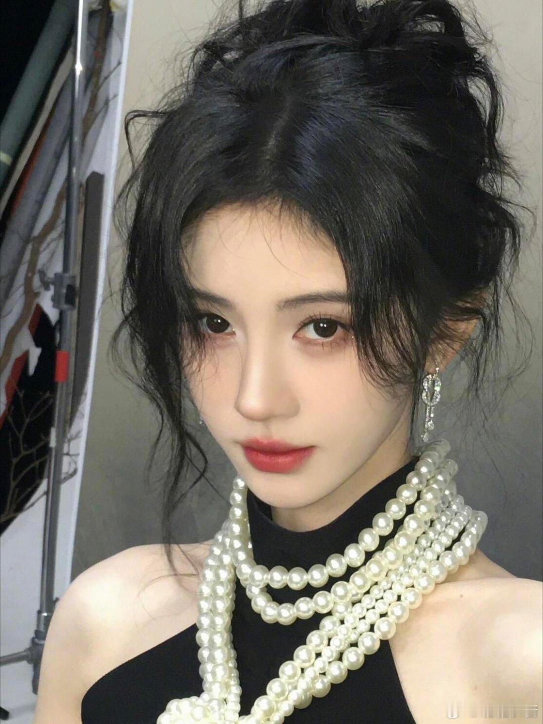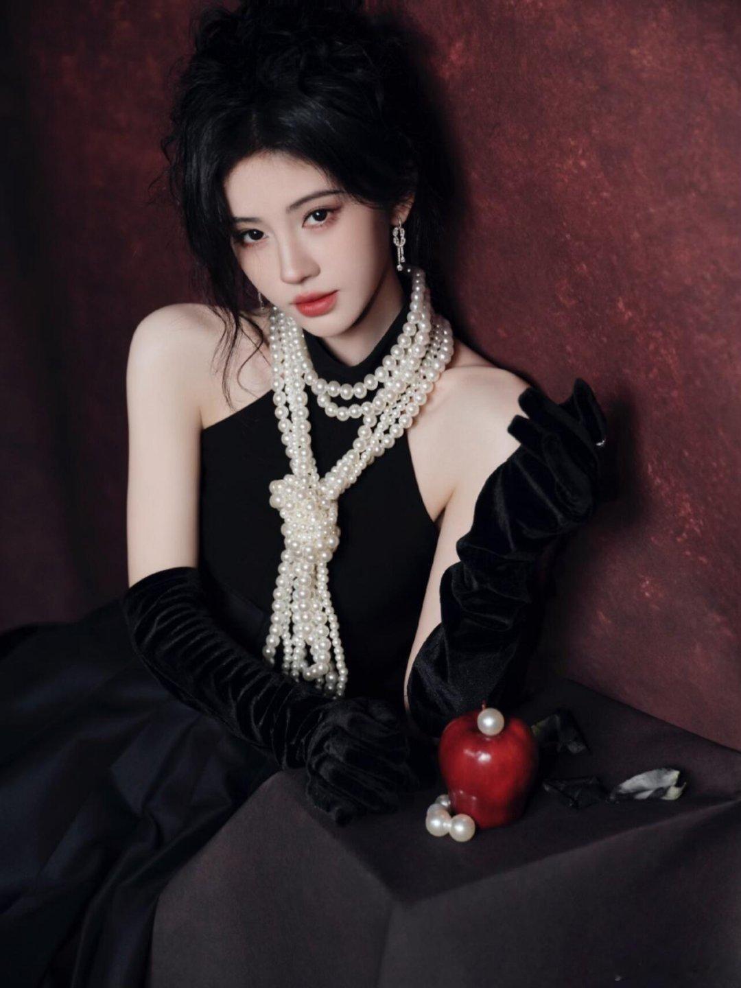 鞠婧祎的黑天鹅造型绝了!叠戴大小珍珠项链瞬间点亮整身礼服,优雅感拉满~