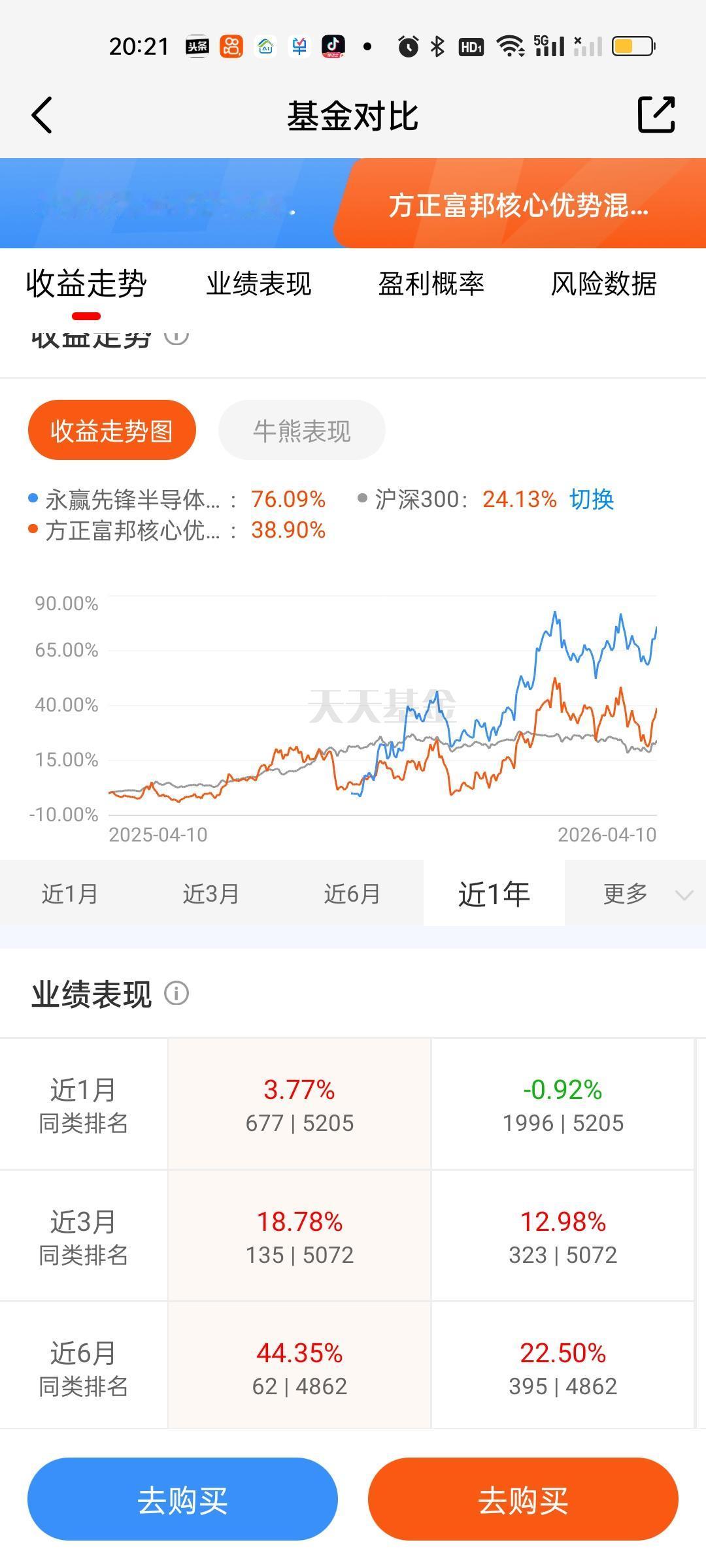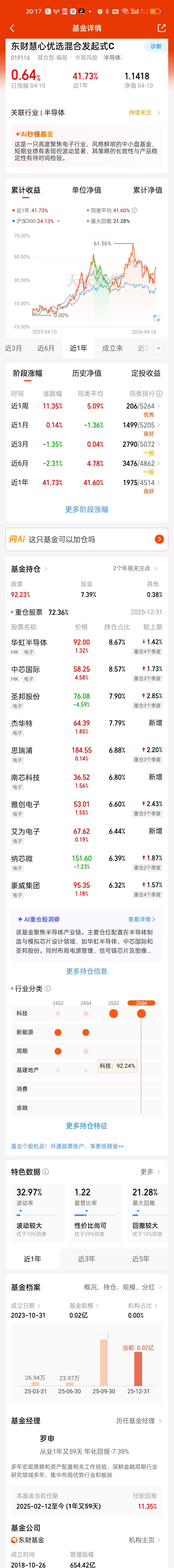 目前整个市场纯血的存储芯片基金就只有方正富邦核心优势,永赢先锋半导体和东方阿尔法科技智选这3只。这3只基金周五涨幅都相当不错,广发远见尽管从持仓看是重仓的存储芯片板块,但连续几个交易日的持续跟踪已经可以确定它调仓换股了。而且很大概率调到了光纤。极大概率已经完全舍弃存储芯片了。至于东财惠心优选,诺安成长混合,嘉实绿色主题股票看持仓更像是半导体,周五的涨幅也明显不如纯血存储芯片基。