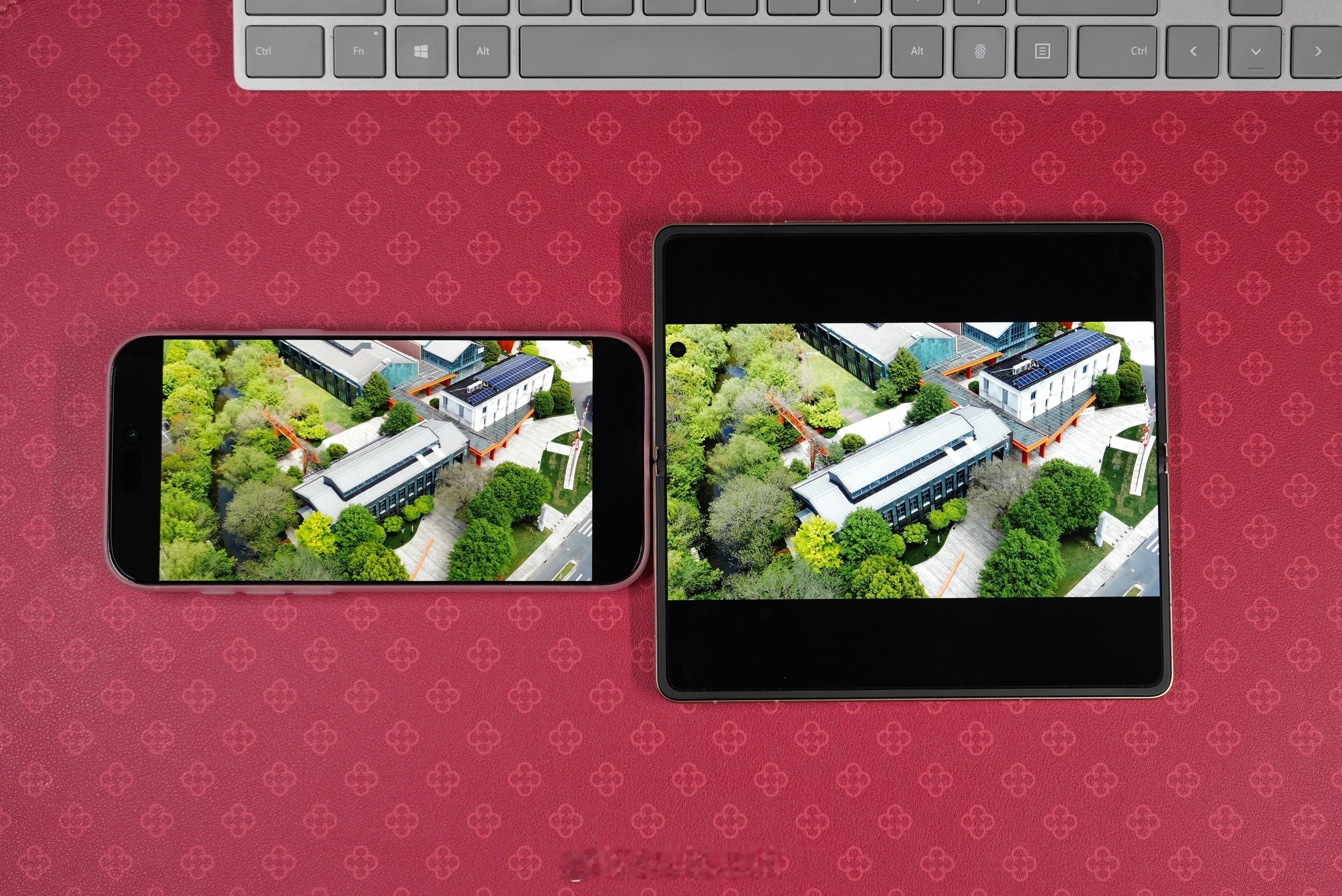 很多人说正方形的折叠屏拿来看视频不如直板机,那么我就拿大屏iPhone 17 Pro Max来对比下,如图3,看视频虽说屏占比更低但是显示面积也实打实更大一些;而且,一旦我拿来看照片,那视觉冲击感就不是任何直板机能比的了,作为一个一年拍几万张照片的人,不管是自己回看还是给亲戚朋友欣赏,那种情绪价值是直板机给不出来的
