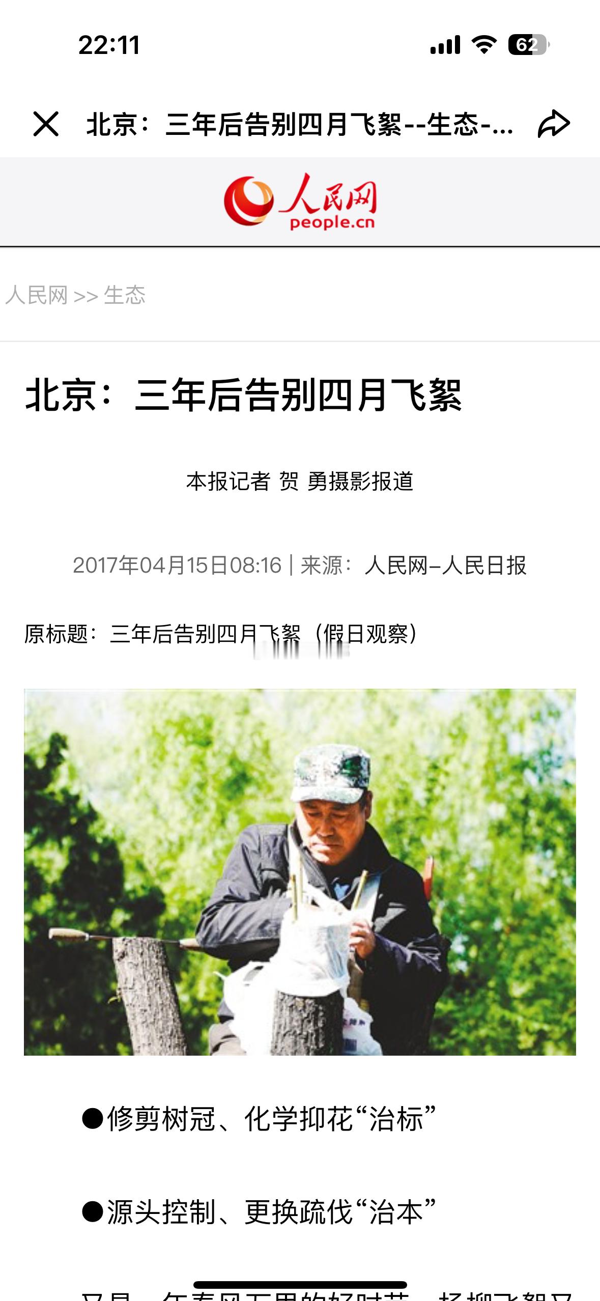 突然发现一则旧闻园林部门:力争到2020年基本治理杨柳飞絮