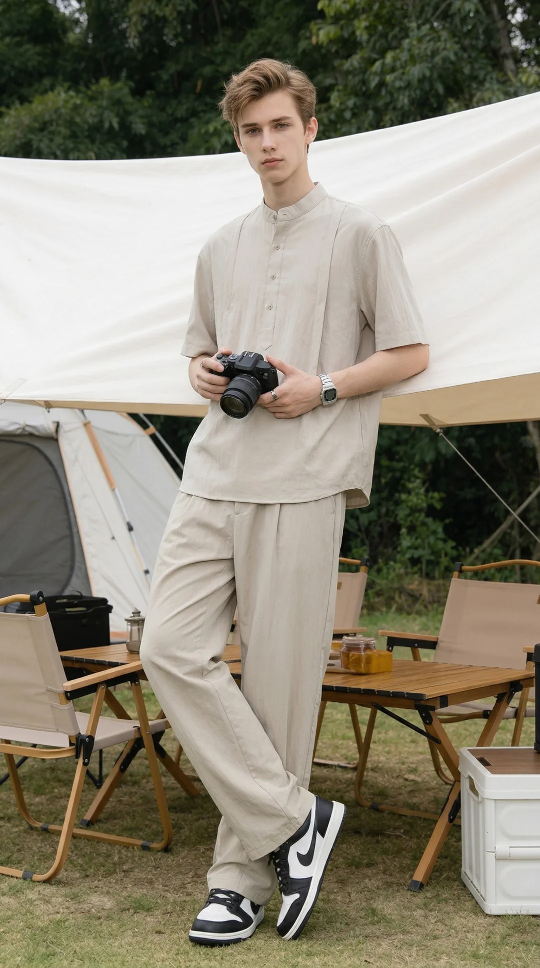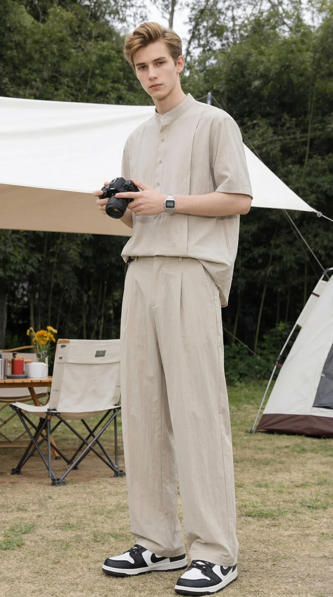 直筒裤对梨形身材太友好了,垂坠感刚好遮住胯宽和腿上的肉,视觉上直接把腿拉得笔直,静奢感和松弛感直接拉满。不管是城市街头喝咖啡,还是周末去户外露营,一套都能 hold 住。