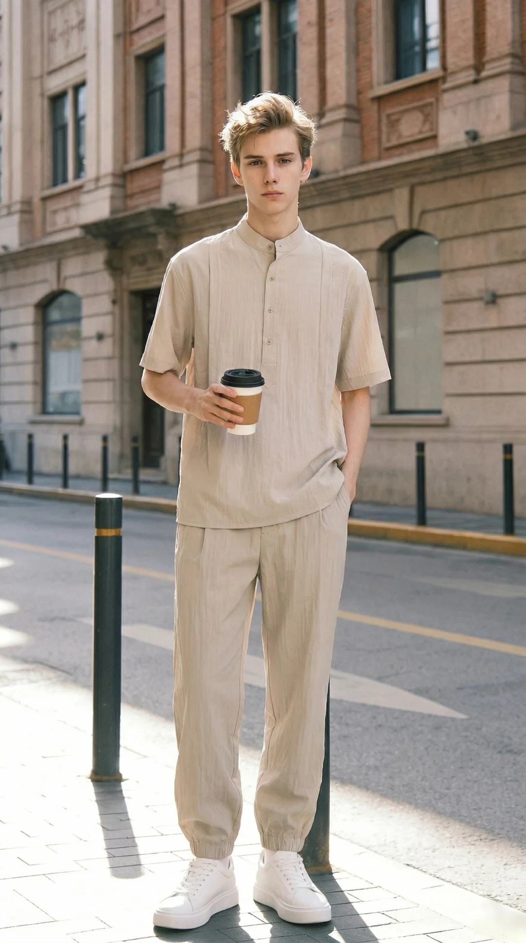 这套万能公式我焊在身上了:新中式立领亚麻衬衫 + 同色系直筒休闲裤👔