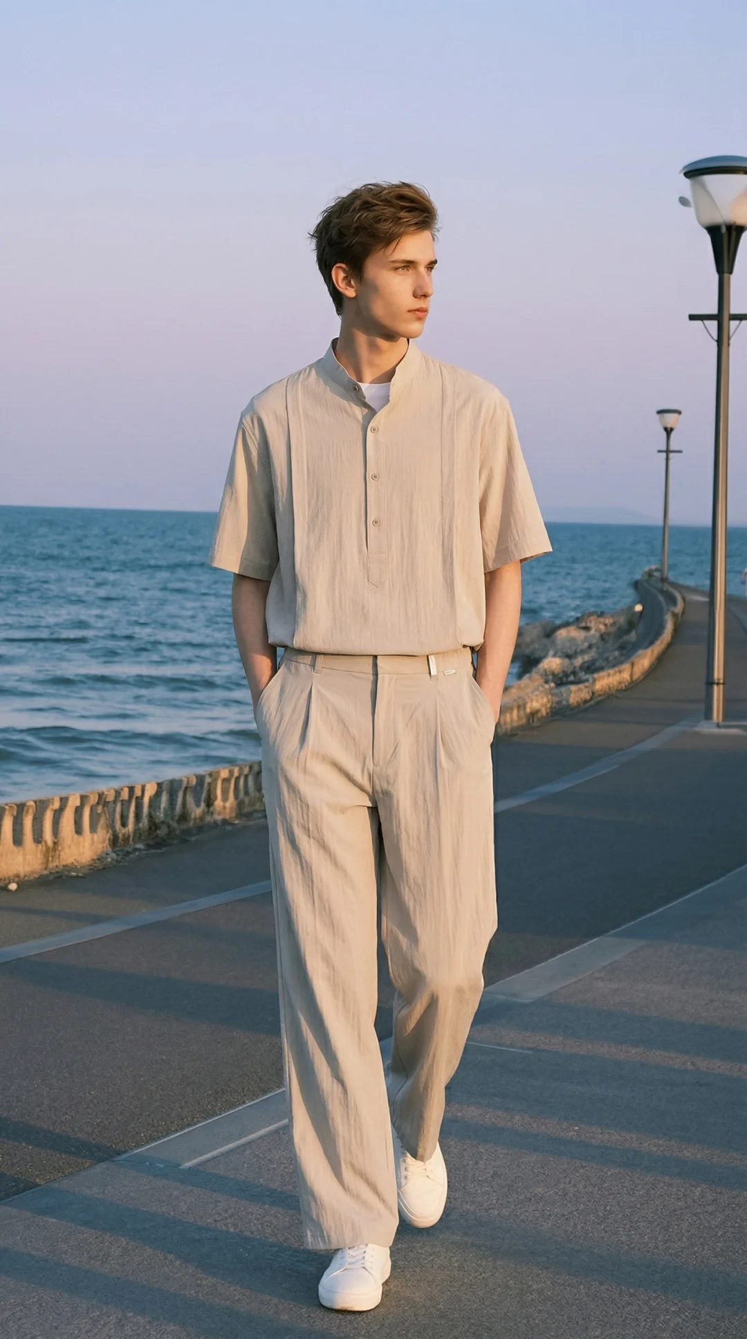 男生度假穿搭亚麻新中式穿出松弛静奢感