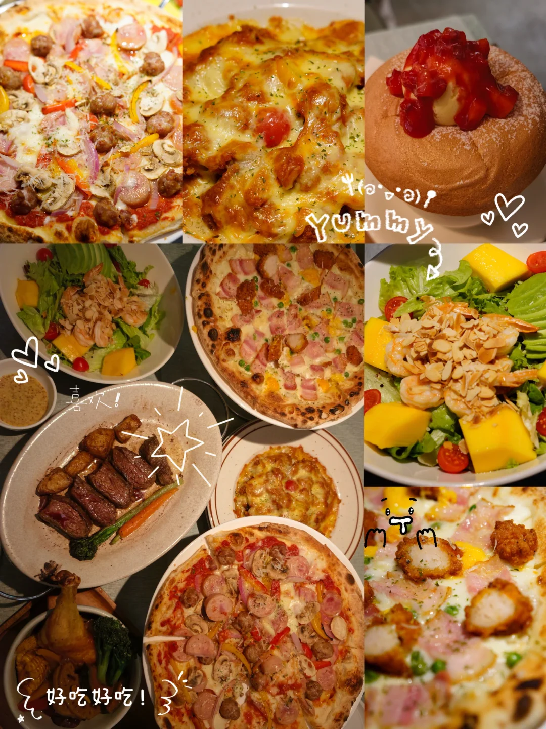 披萨、米饭、蛋白质、蔬菜色拉、甜品,啥都🈶~
