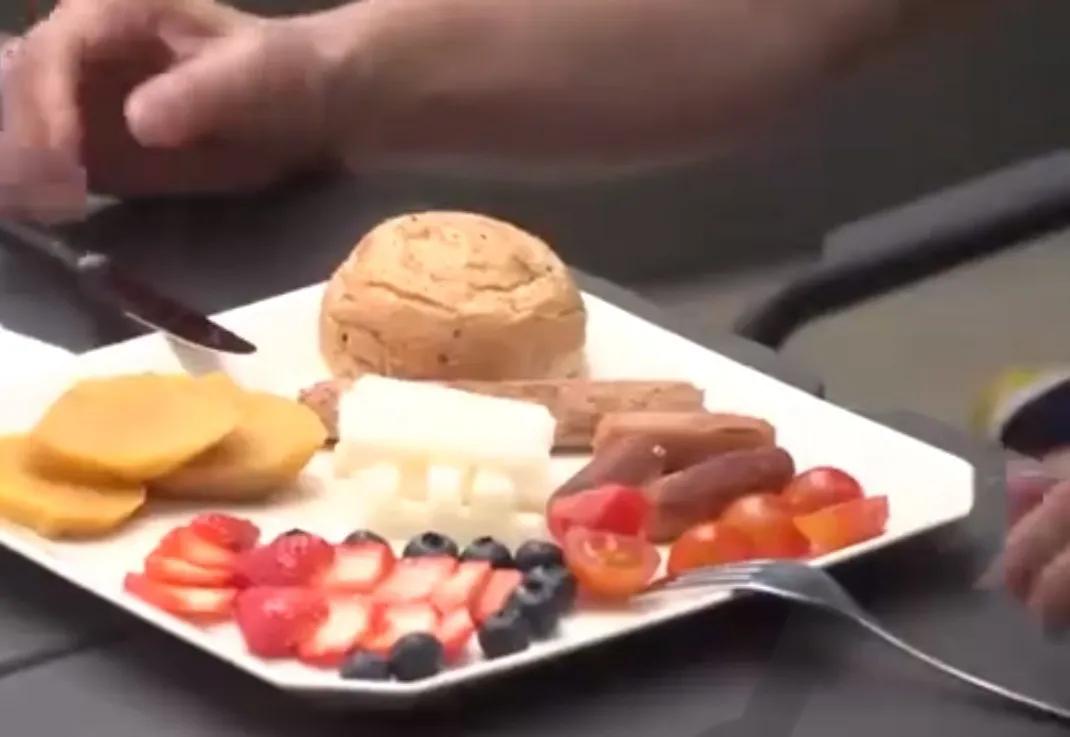 吕良伟的这份​早餐没有油重味大食物,只有几块蒸番薯、一小把蓝莓,再加上几片淮山和​一节素肠,吃​完早餐他会出​门快走,他说这样吃​全程脑​子清楚,走路腿脚也不发沉,保持​这个习惯已​经很​多年。
