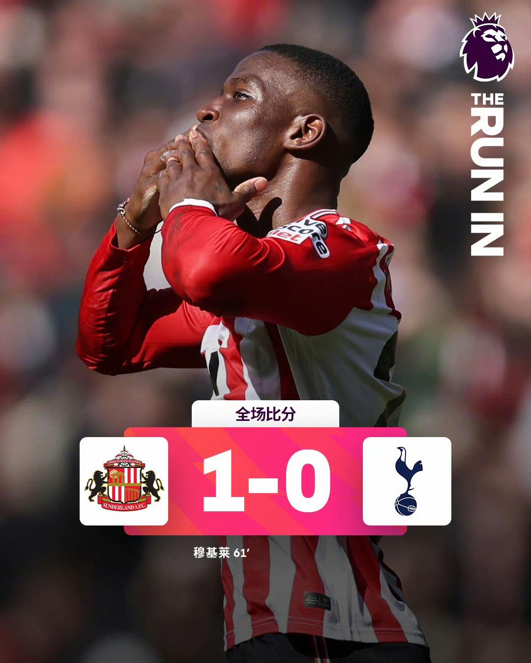 桑德兰1-0险胜热刺后,直接将热刺推入万丈深渊,热刺彻底掉入降级区。