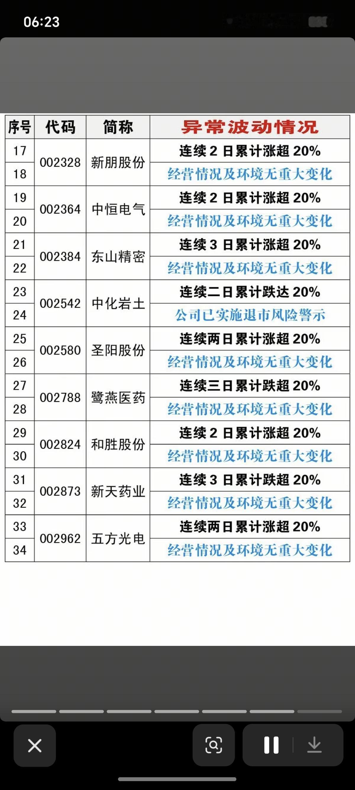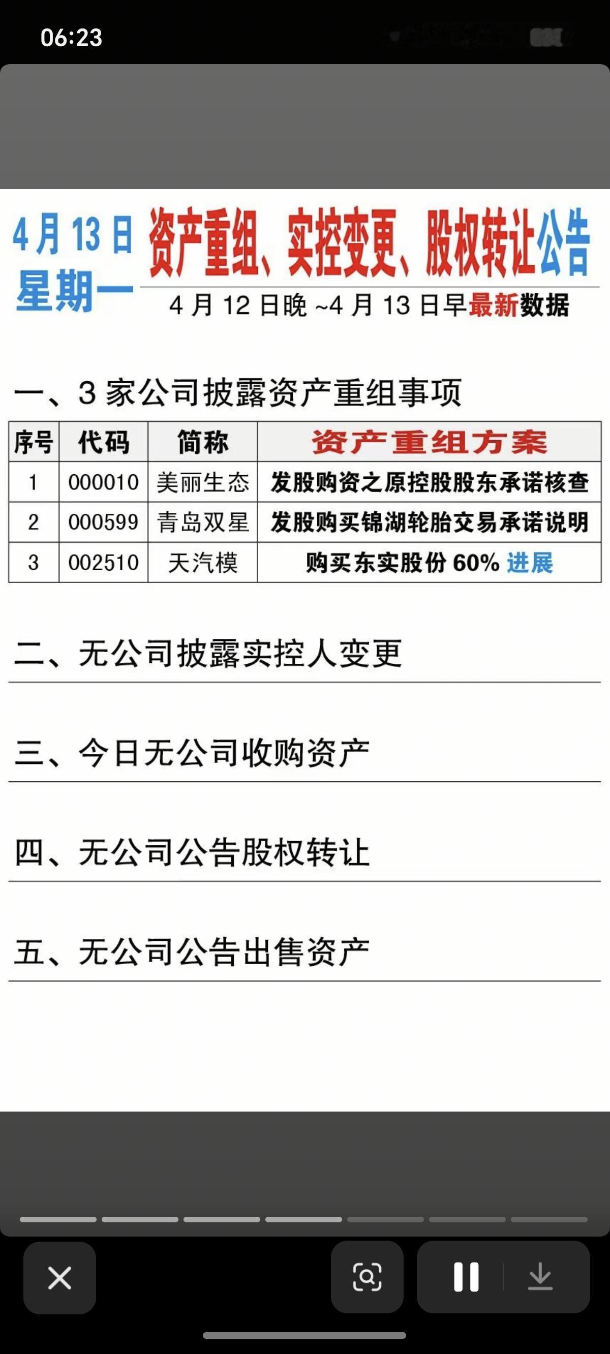 主要涉及:增持、减持、回购、终止上市风险、资产重组、股价异动等
