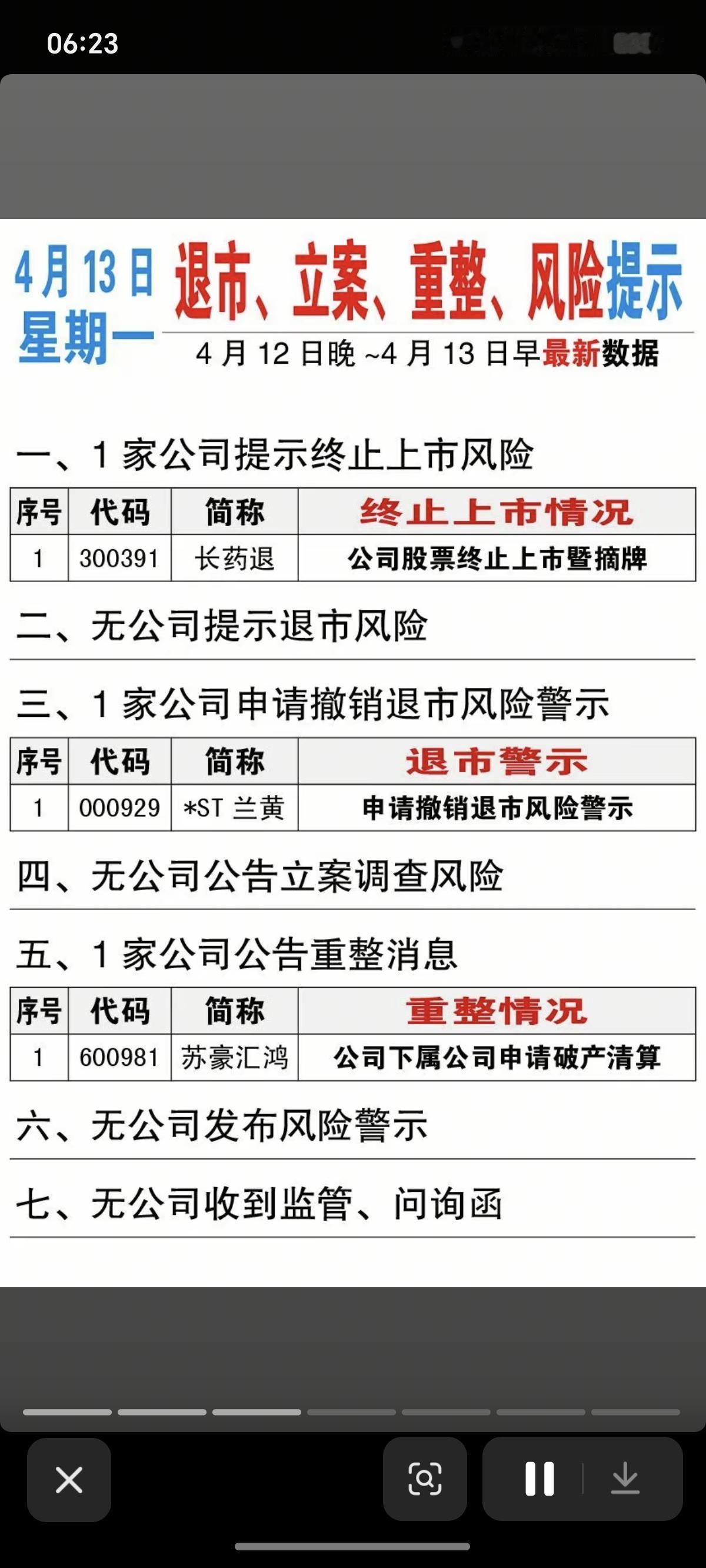 4.13周一 上市公司公告精选汇总! 主要涉及:增持、减持、回购、终止上市风险