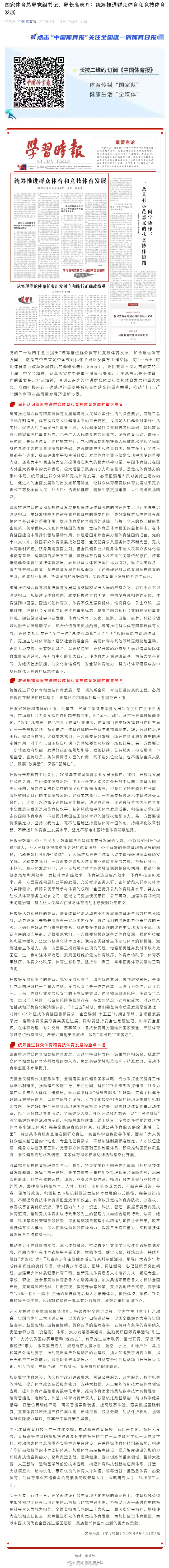 国家体育总局党组书记、局长高志丹:统筹推进群众体育和竞技体育发展