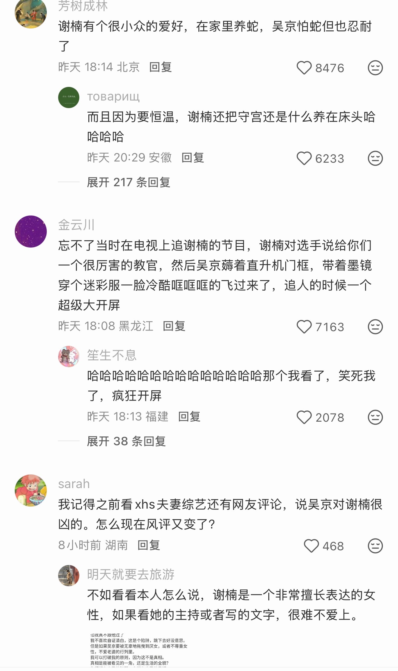 我刷了好久,看得我想去补一下谢楠的papi热烈欢迎了,谢楠吴京真夫妻有点好嗑啊