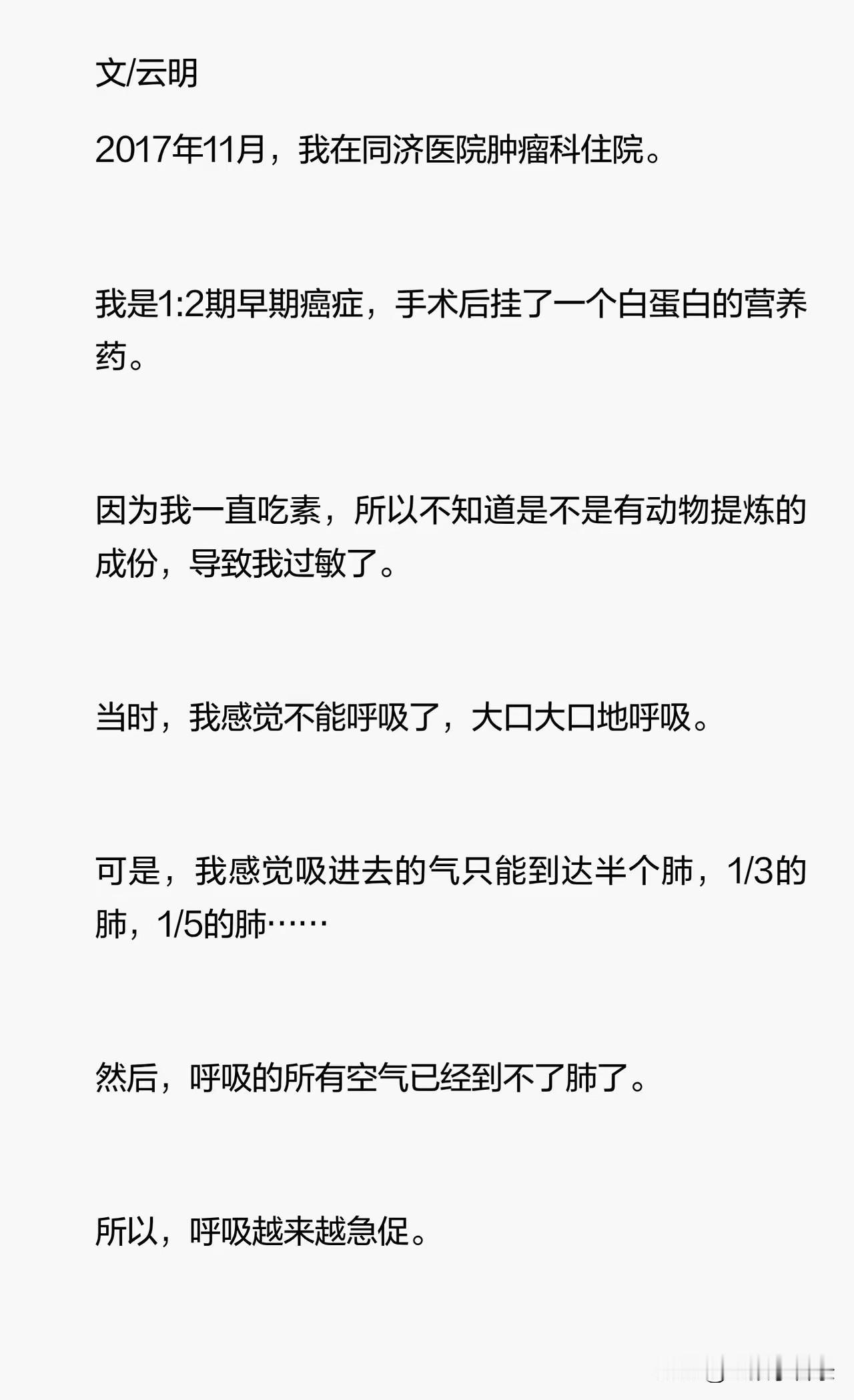 她是一个癌症患者,因为打白蛋白营养针过敏,经历了鬼门关,这一次经历让她彻底改变。