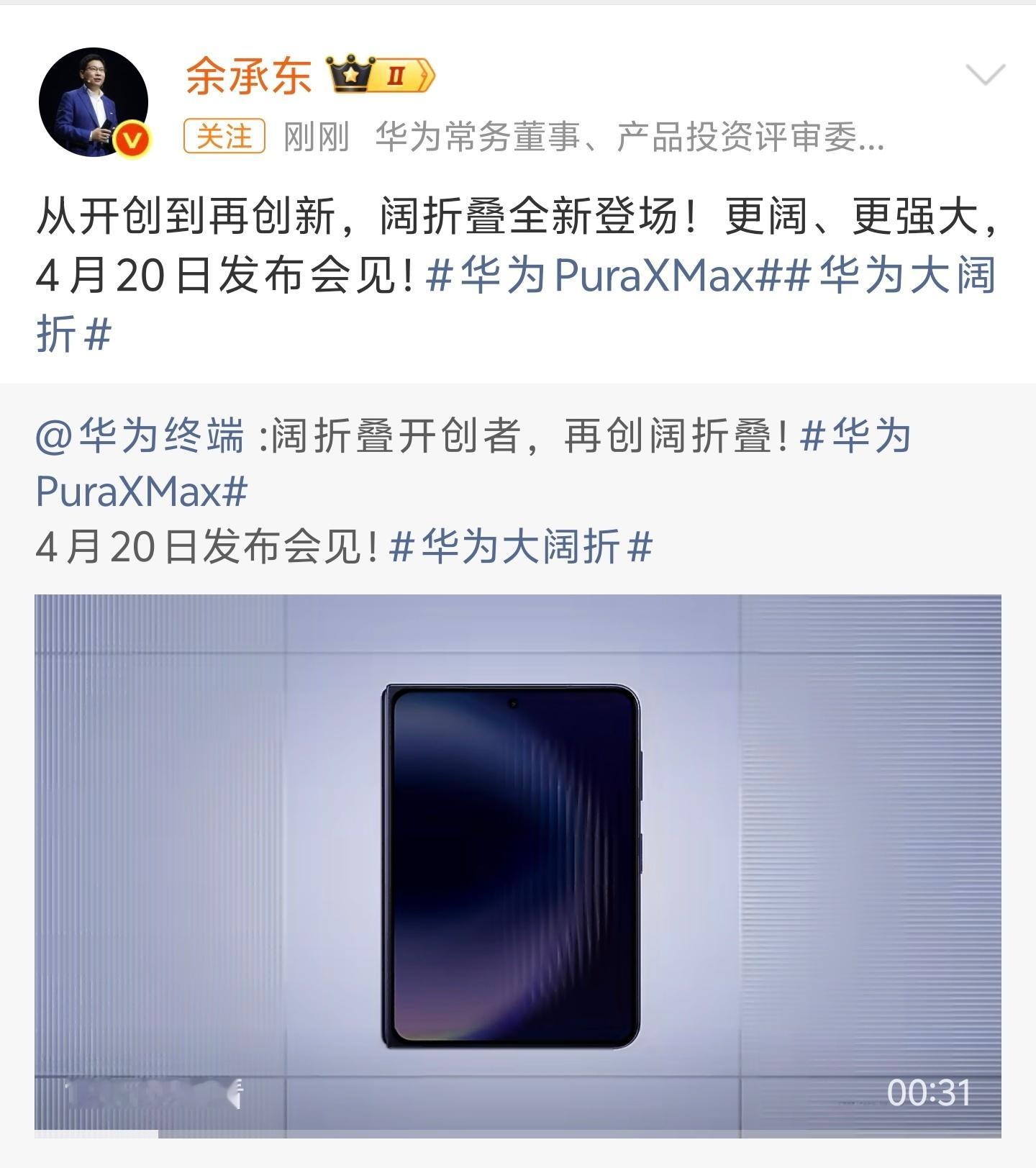 第二代阔折叠「生产力工具」华为PuraXMax来了 -首发麒麟9030 Pro芯