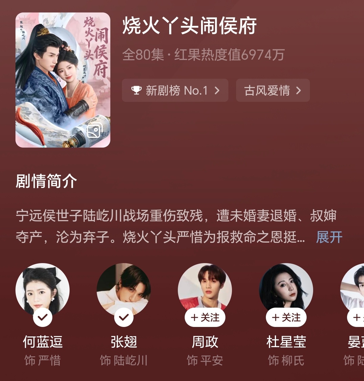 《烧火丫头闹侯府》何蓝逗第一部竖短,演技灵灵灵,但乐华娱乐给她的规划完全看不懂。剧情普通,好好的二人转最后不知道在干嘛,莫名其妙分开。男主这个角色简直在张翅舒适区,但以为要偏执又没有。