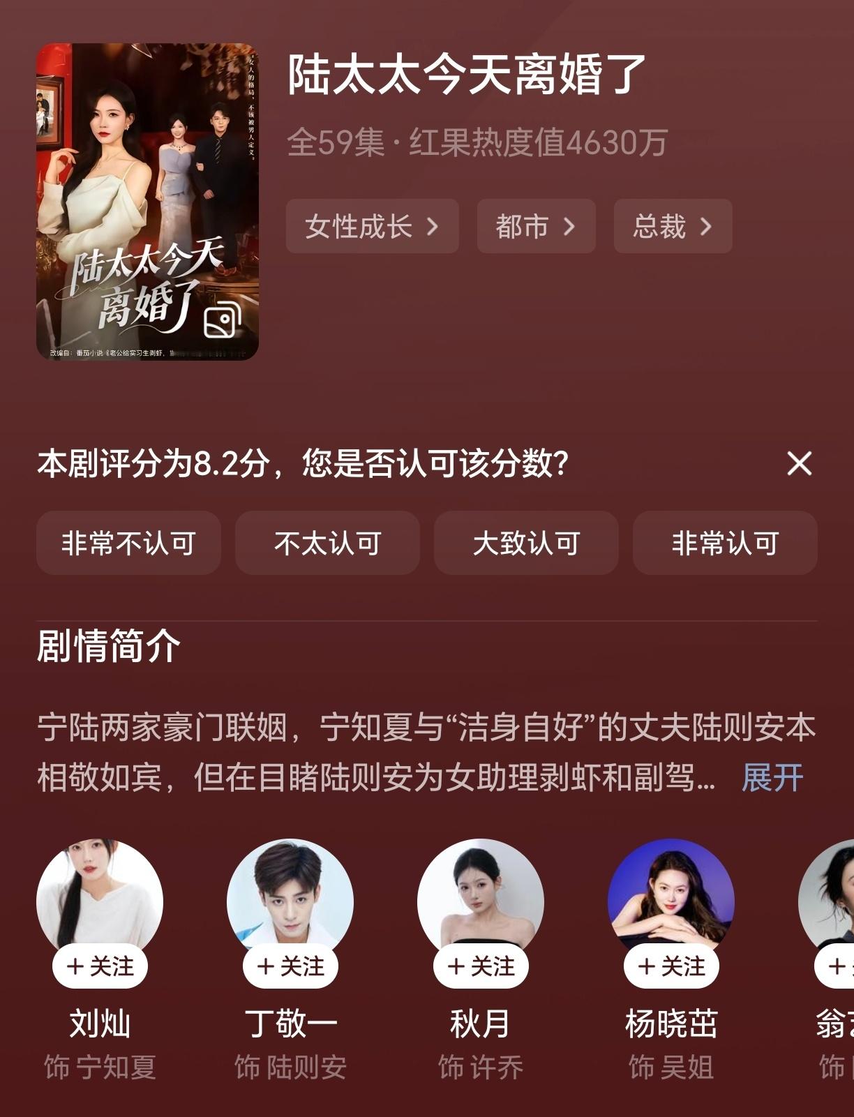 《陆太太今天离婚了》现代大女主无cp离婚爽剧,口号就是要女人来喊,女人就是会救女人。这部是这里最好看的。
