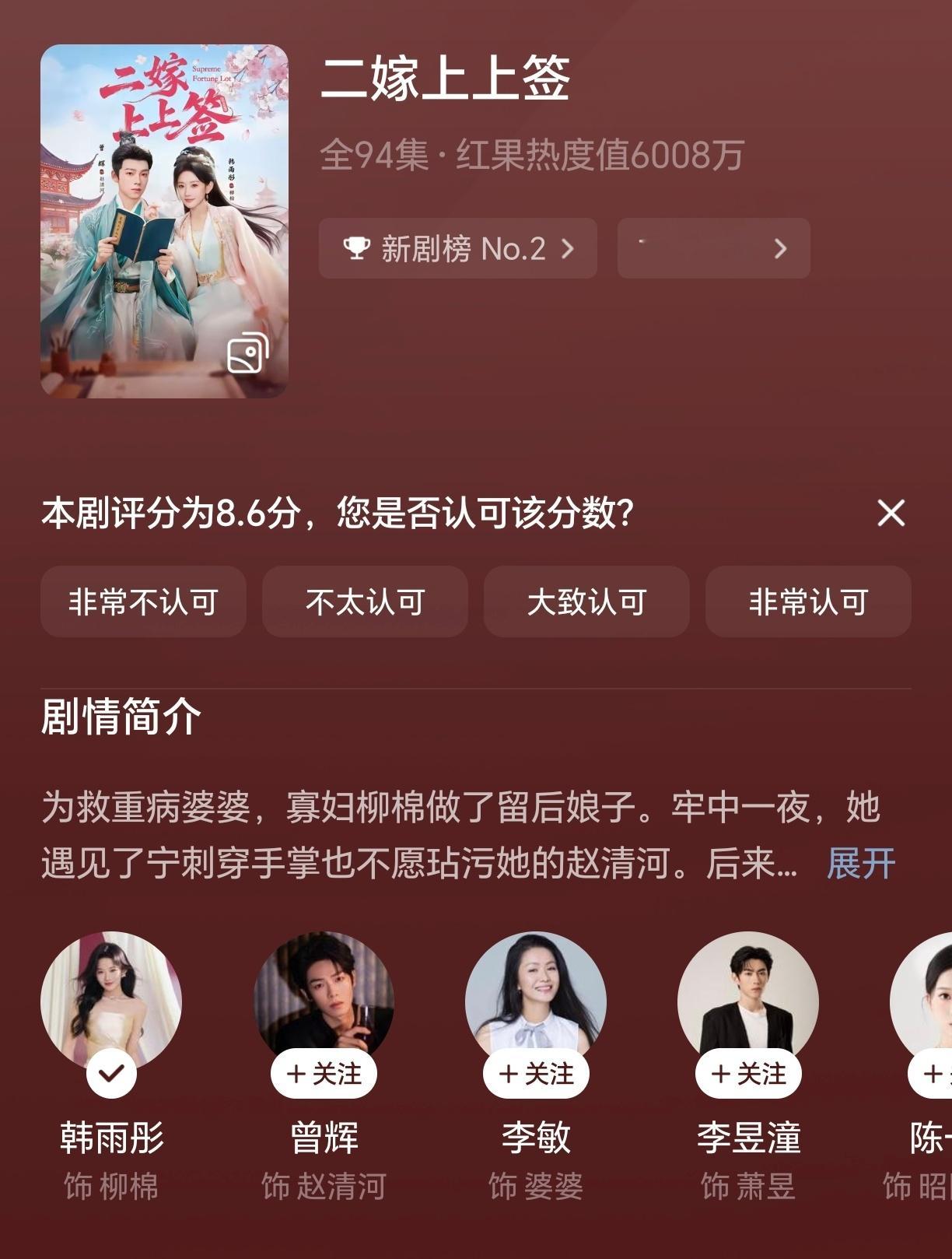最近红果鉴赏:《二嫁上上签》古偶二人转,有点平淡,但是母女线写得太好了,韩雨彤演