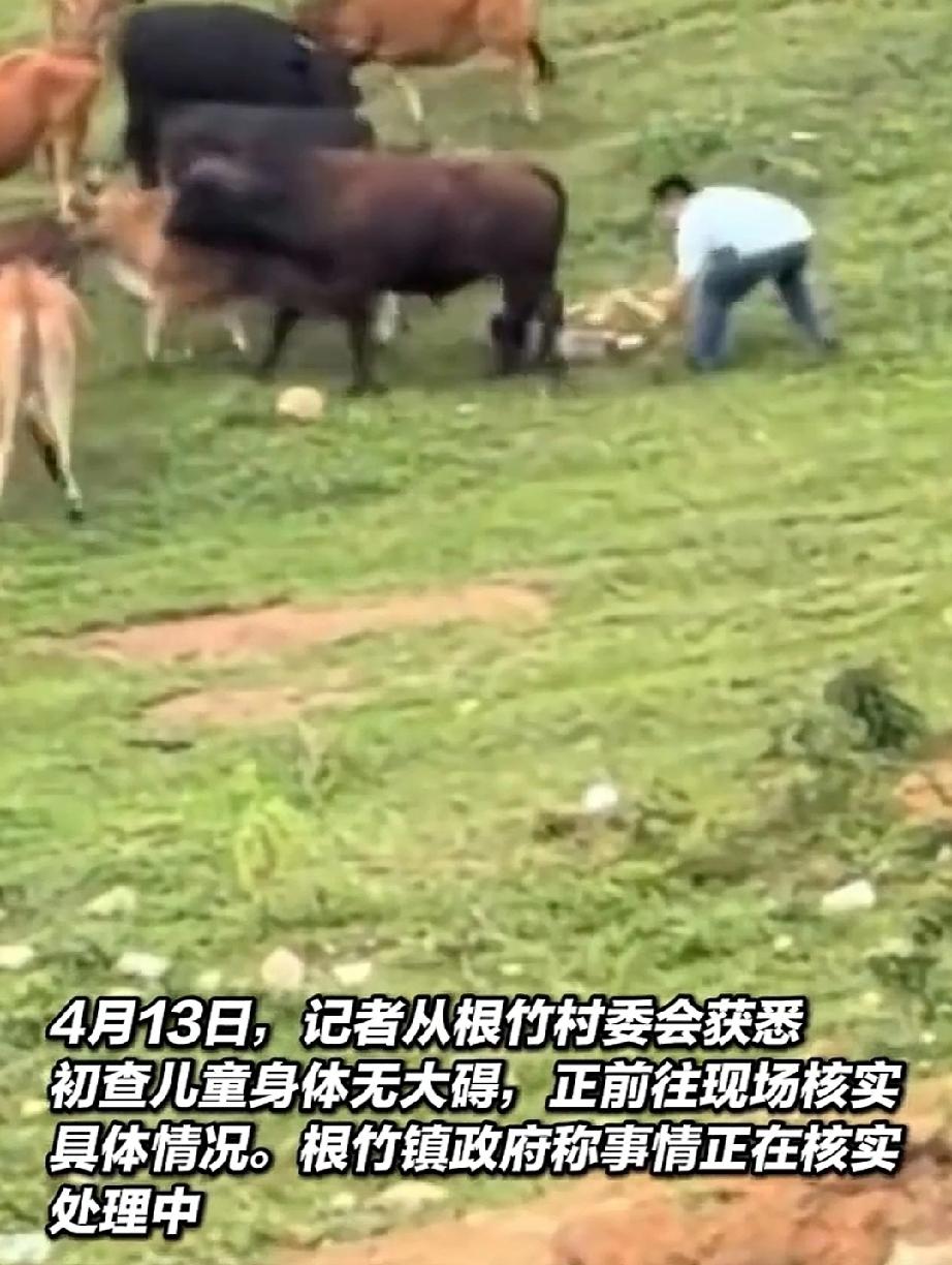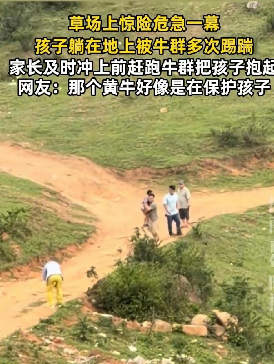 儿童安全问题如何引起重视 儿童摔倒疑遭牛群踩踏 男子上前驱赶户外踏青游 踏青