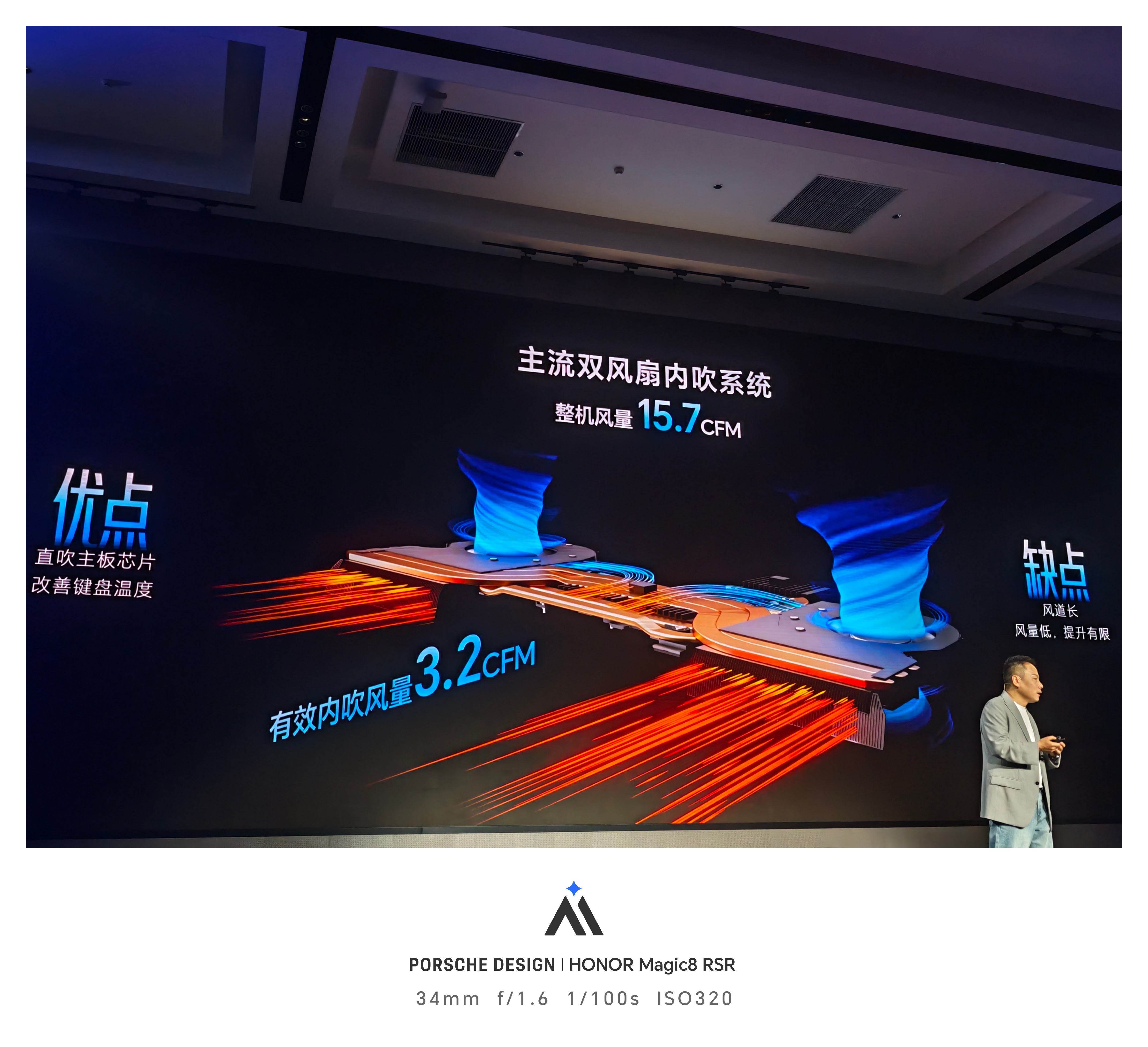 相比传统游戏本的双风扇和三风扇散热,荣耀WIN游戏本这次,用上了自研的东风尾喷散