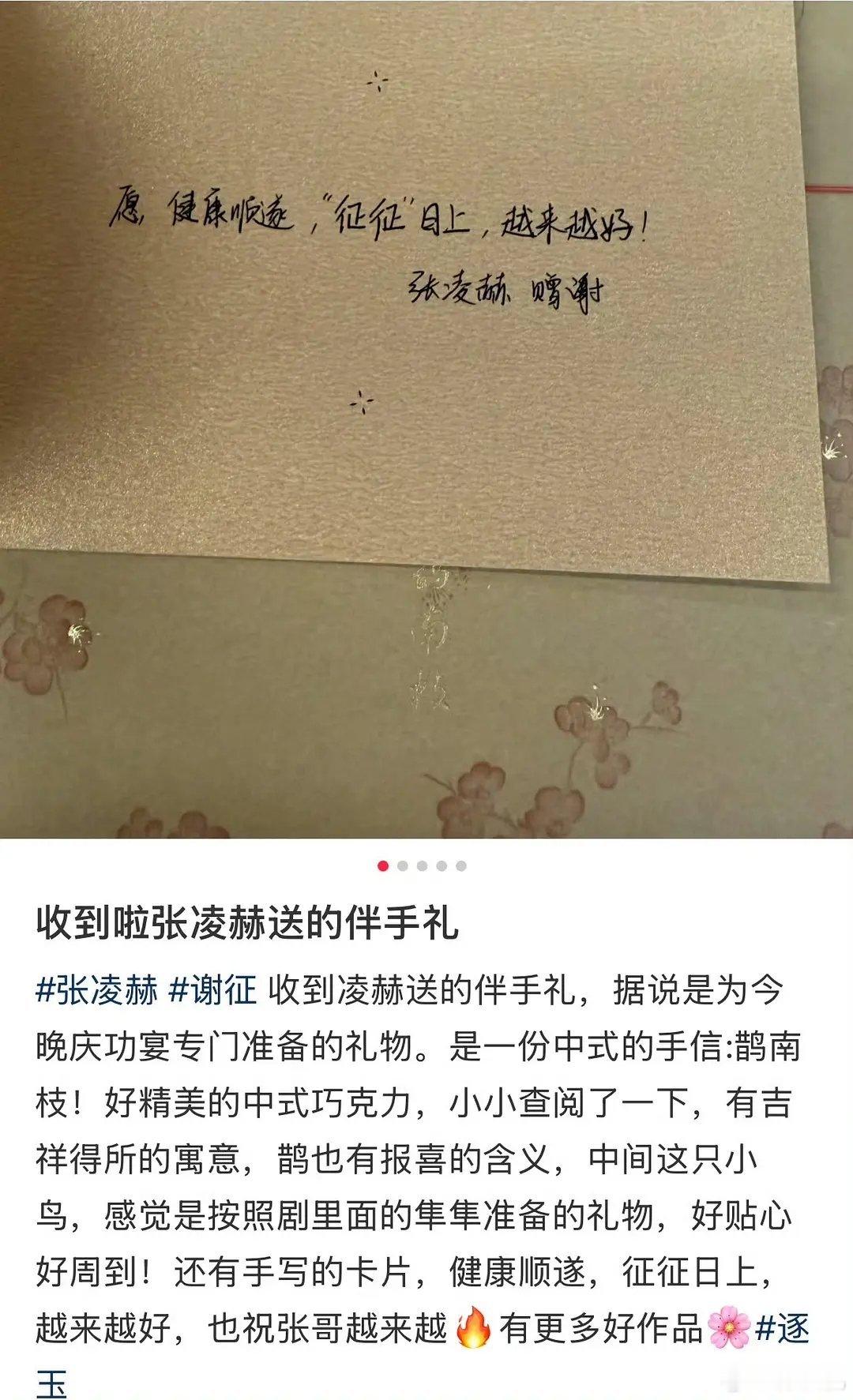 逐玉庆功宴,张凌赫送的伴手礼,居然还有手写卡片诶,是他自己写的吗?