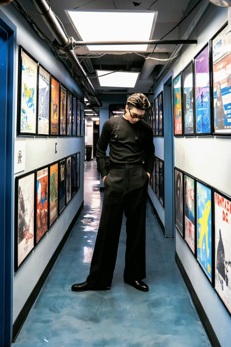 蔡徐坤 2026 KUN全球巡回演唱会·芝加哥站,身穿一身黑色的Zegna定制系列,整体造型没有过多繁复的装饰,却通过细节(如墨镜、发型、配饰)强化个人风格。蔡徐坤2026KUN全球巡回演唱会