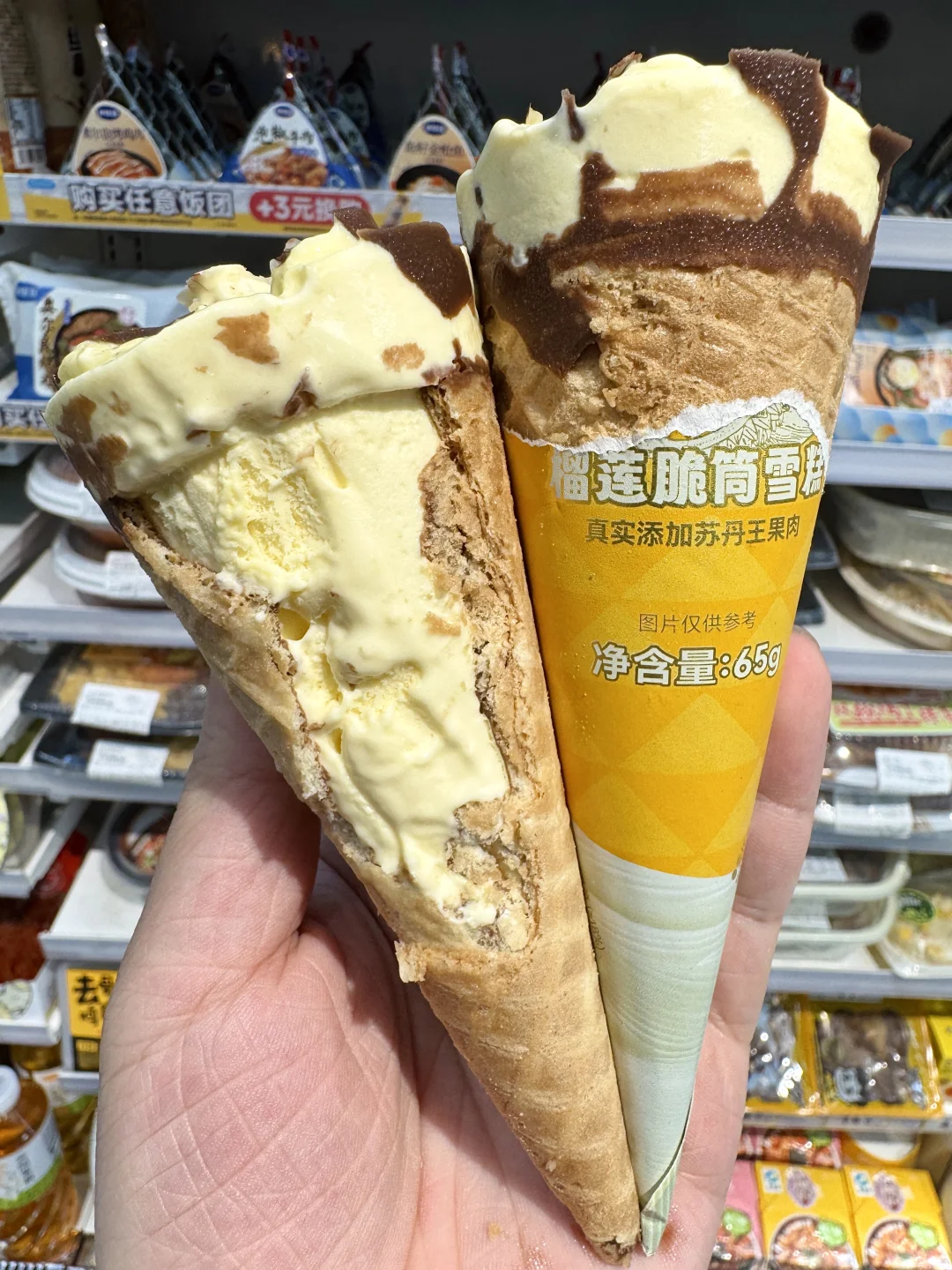 新佳宜上新的榴芒一刻榴莲冰淇淋,好好吃啊。。。