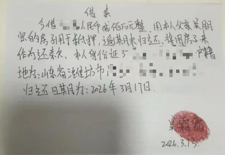 嫌疑人制作的假借条。图片来源/上海普陀警方