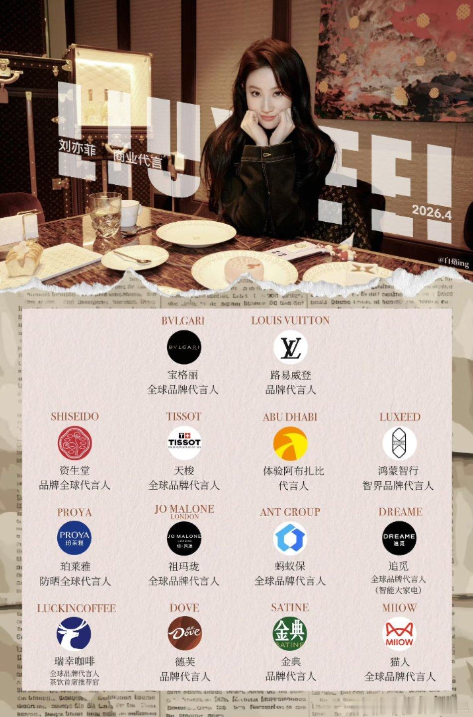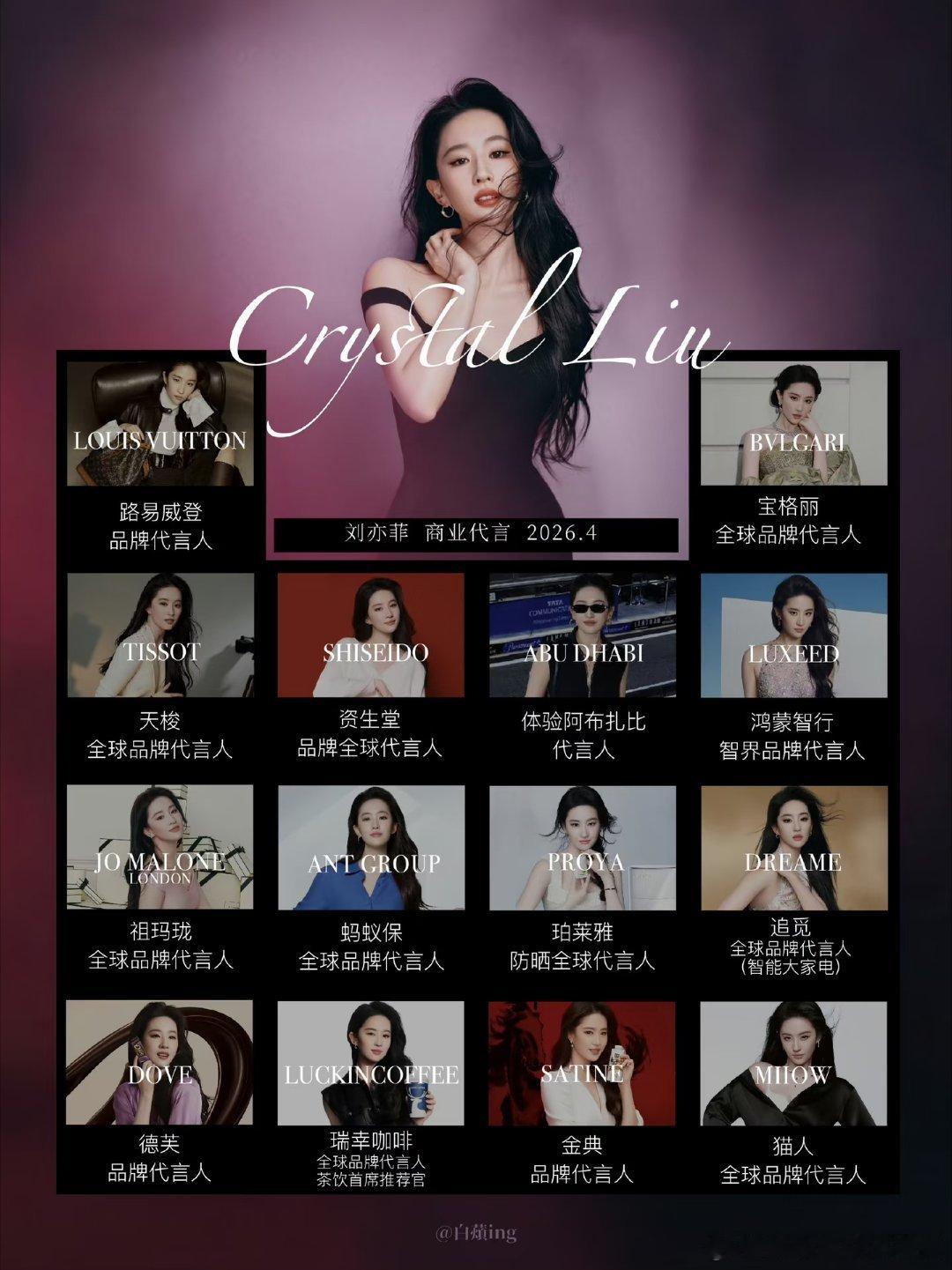 刘亦菲代言版图继续扩大中刘亦菲每个品牌的最高title 谁懂啊!刘亦菲的代言真的