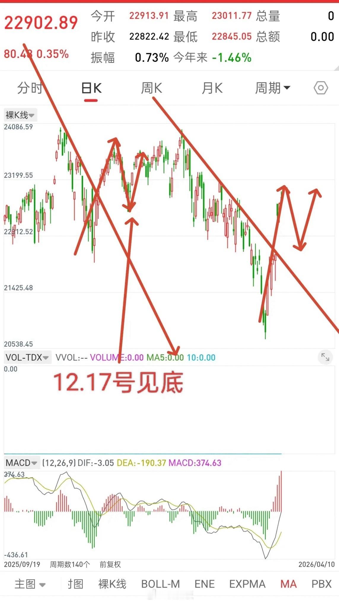 当时是12.16号和12.17号见底,这一次大概也在中下旬,而且二次探底的底,是要把所有均线跌破,打出恐慌盘,行情见底。