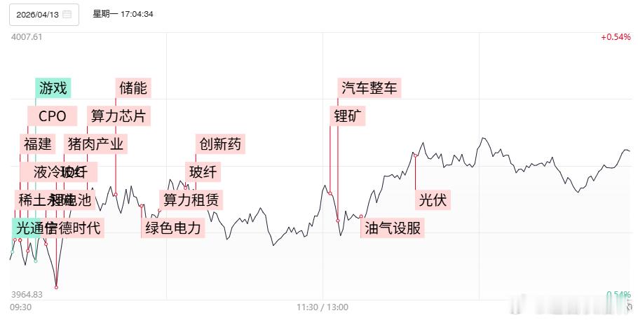 连板晋级率30.77%,随着指数陷入高位震荡,短线情绪继续有所改善,最高标华远控股晋级5连板,带动部分具备并购重组或股权转让预期品种强势,此前连续3日一字涨停的长源东谷换手板实现3进4,前期算力芯片人气股天普股份晋级2连板。随着中东局势的反复,新能源产业链持续得到市场热捧的同时,光伏、绿电产业链盘中也展开轮动补涨反弹。而多只前期人气妖股依旧遭遇补跌,法尔胜、汇源通信一度触及跌停,舒华体育、津药药业等也位居跌幅前列。而随着部分上市公司发布业绩不及预期,绩差股近期依旧反馈较为恶劣,柳化股份全天封死一字跌停,在业绩披露期尚有半个月背景下,当前短线资金追高意愿或持续受到压制。