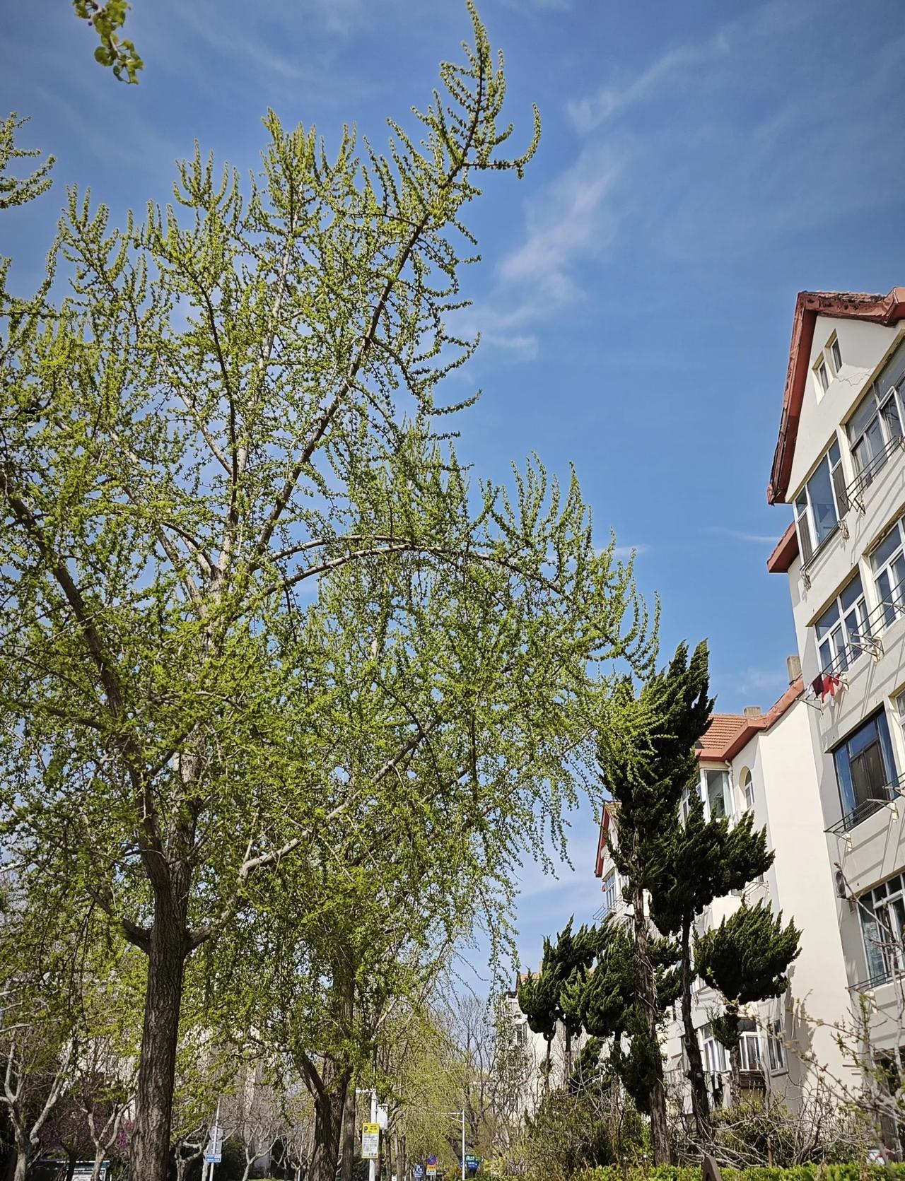 银杏树叶开始泛绿