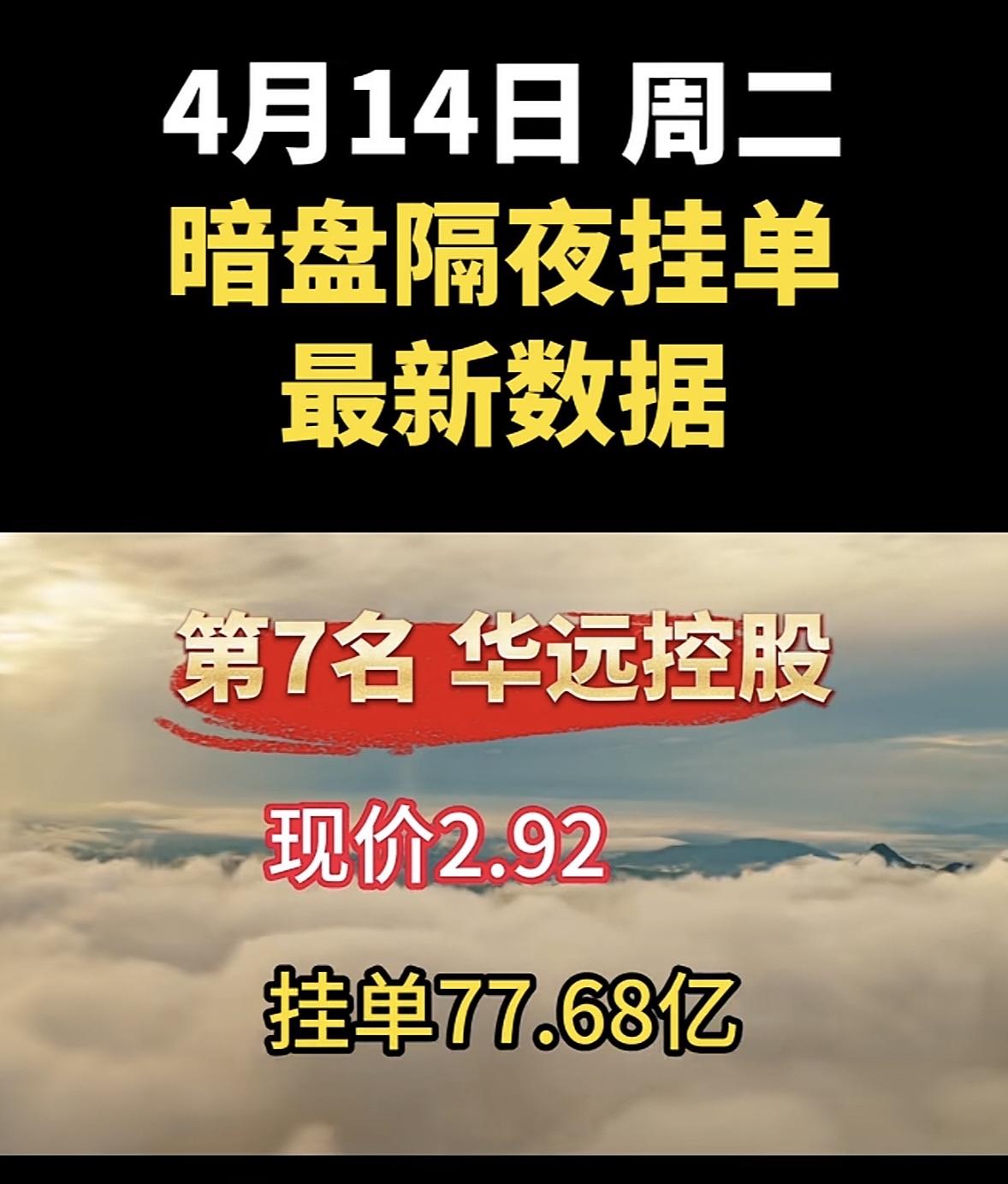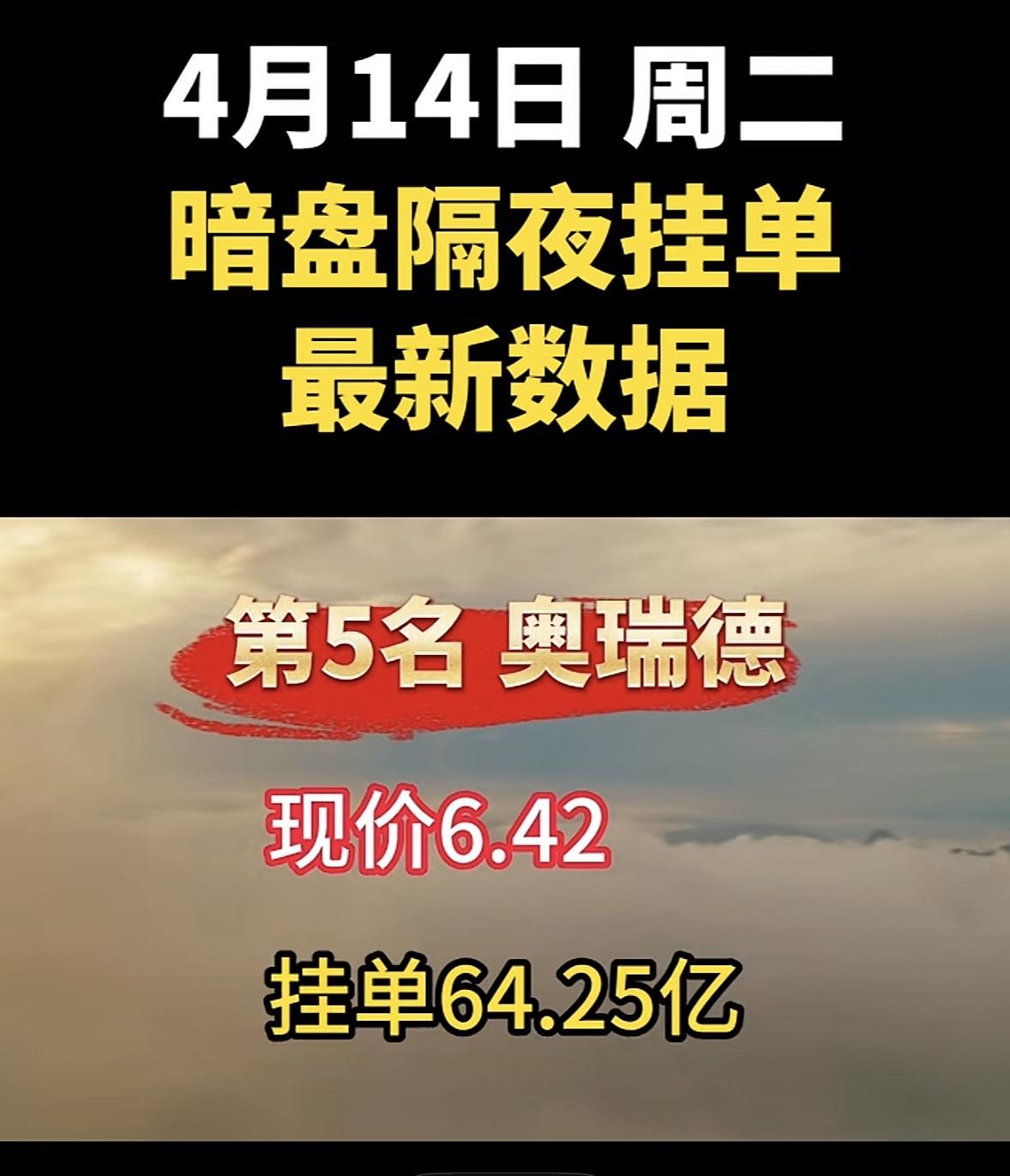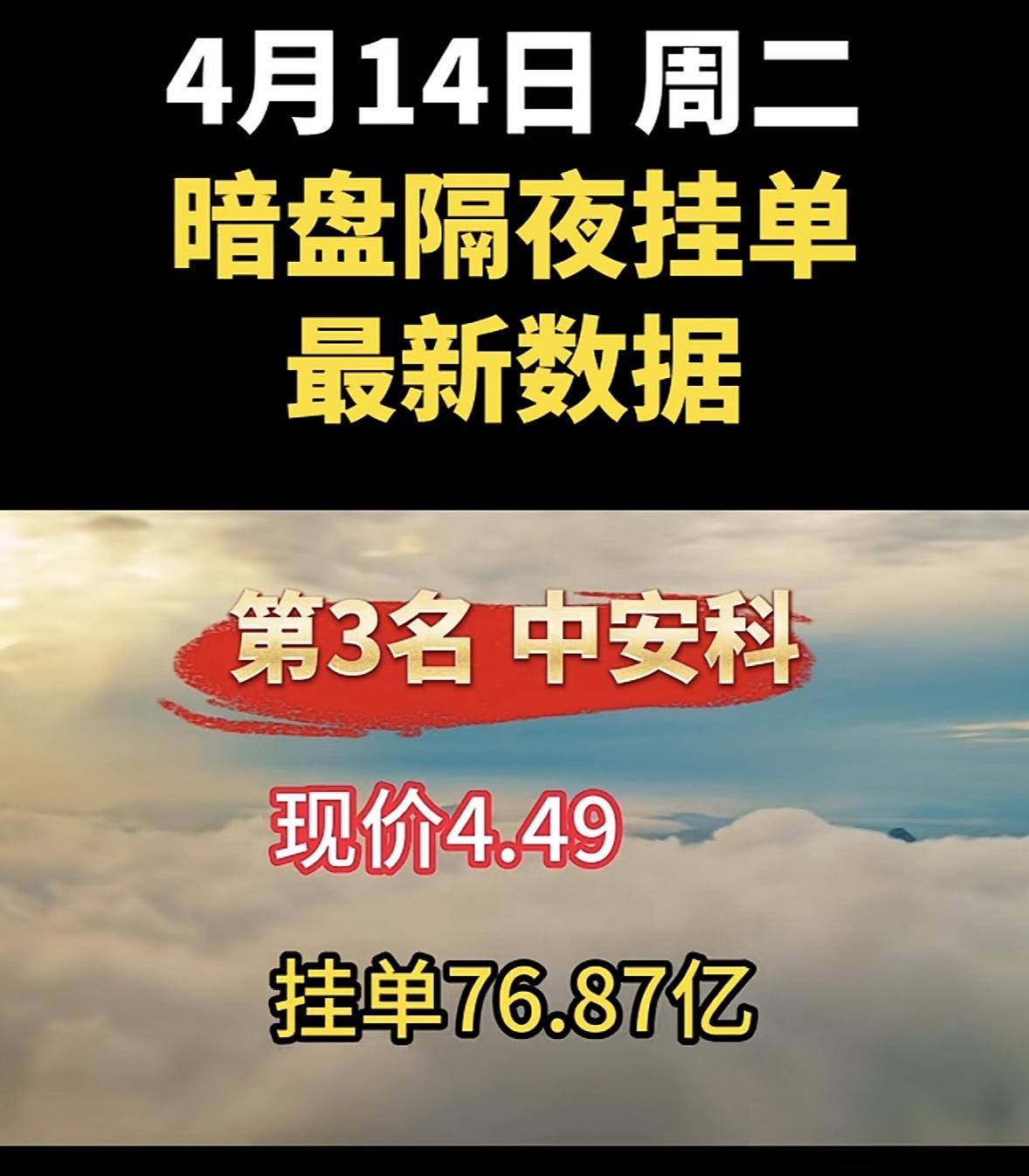 4月14日周二暗盘隔夜挂单排行榜揭晓