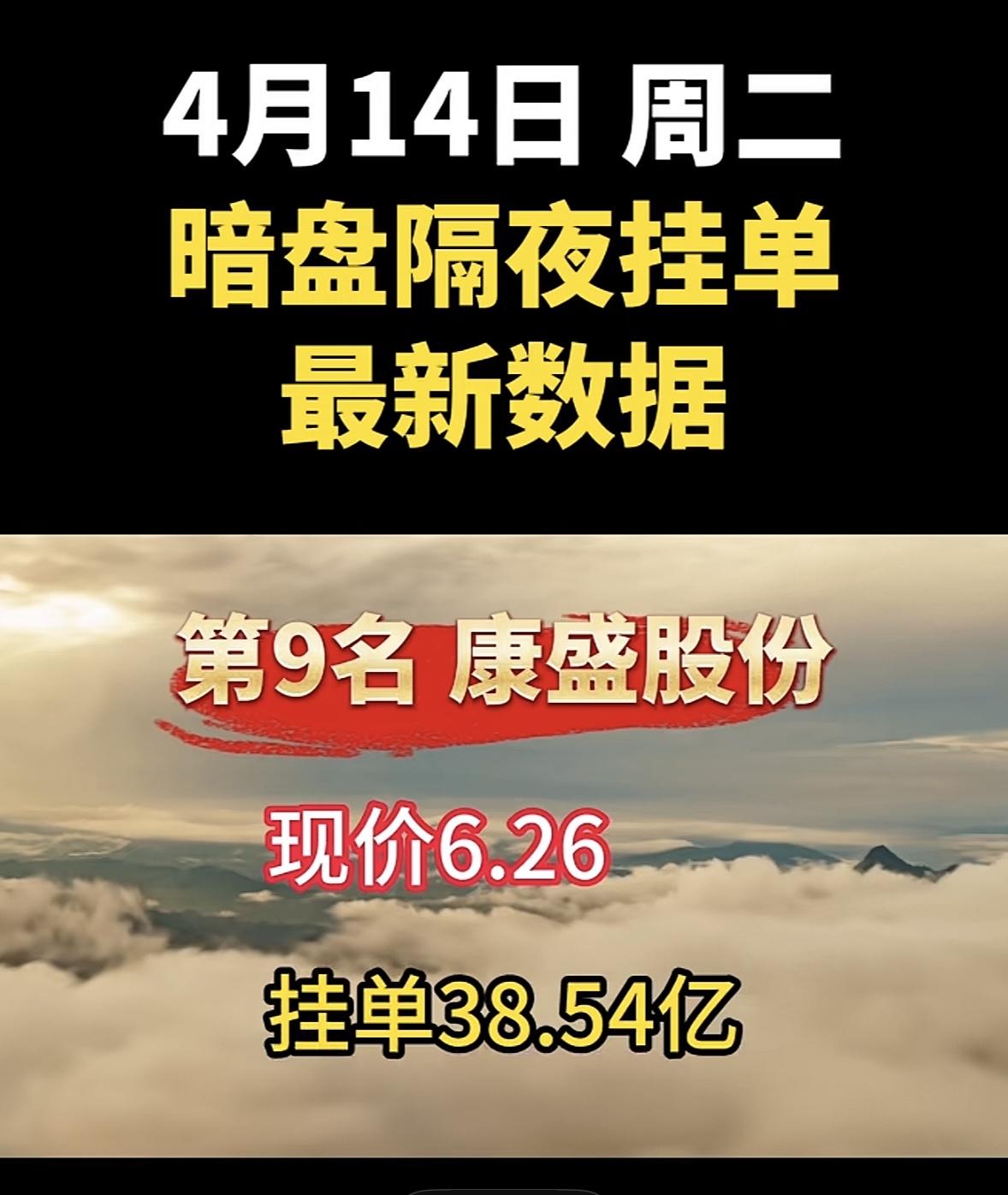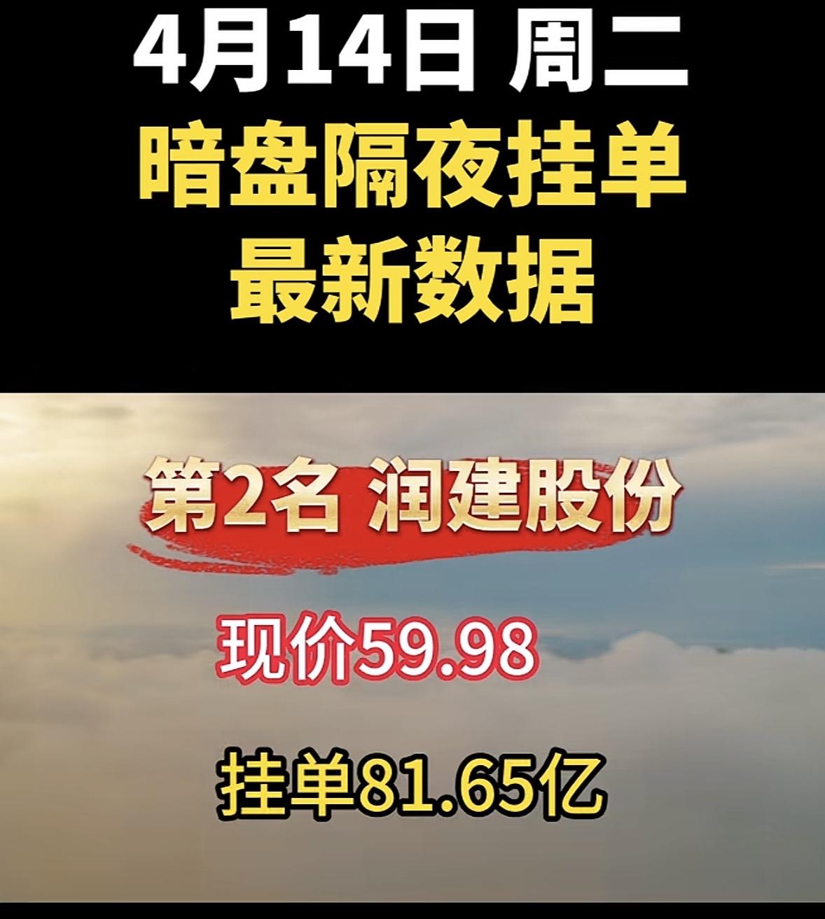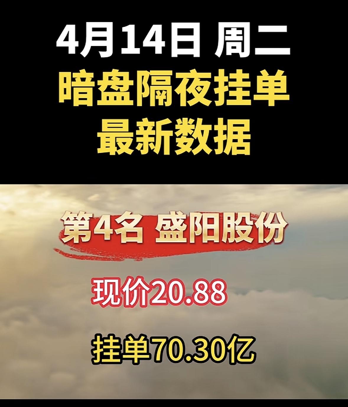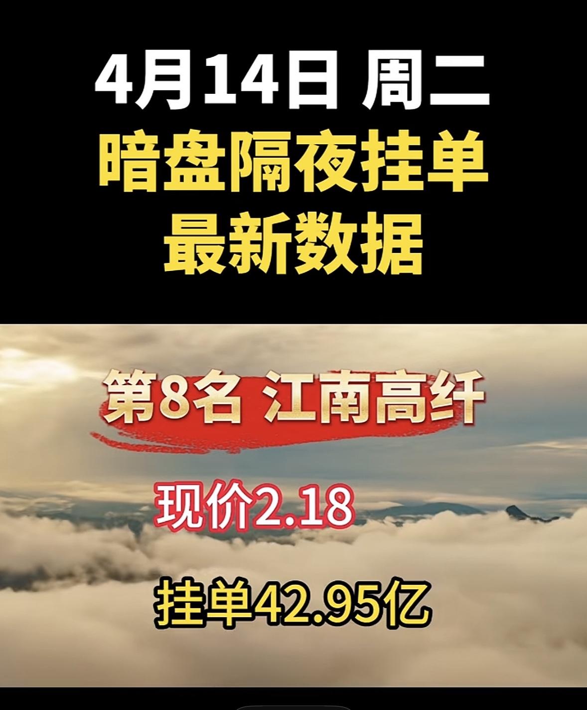 4月14日周二暗盘隔夜挂单排行榜揭晓