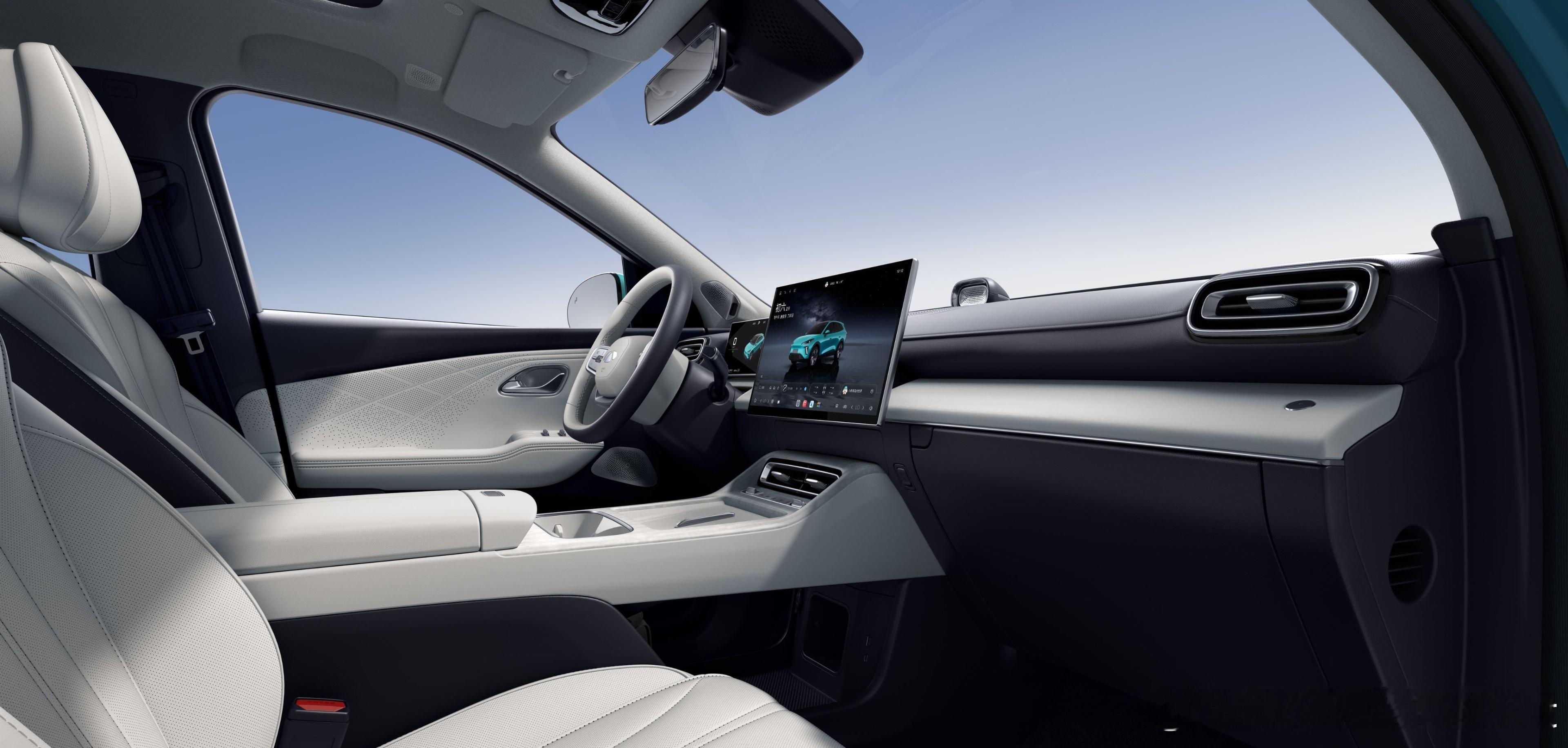 4、采用灵犀智能座舱,搭载15.6吋2.5K高清大屏 、10.25吋高清仪表屏 和17.3吋后舱娱乐屏、256色律动流萤氛围灯 、23扬伯牙之音雅系列音响和 -6°至50°可拓展生态冰箱