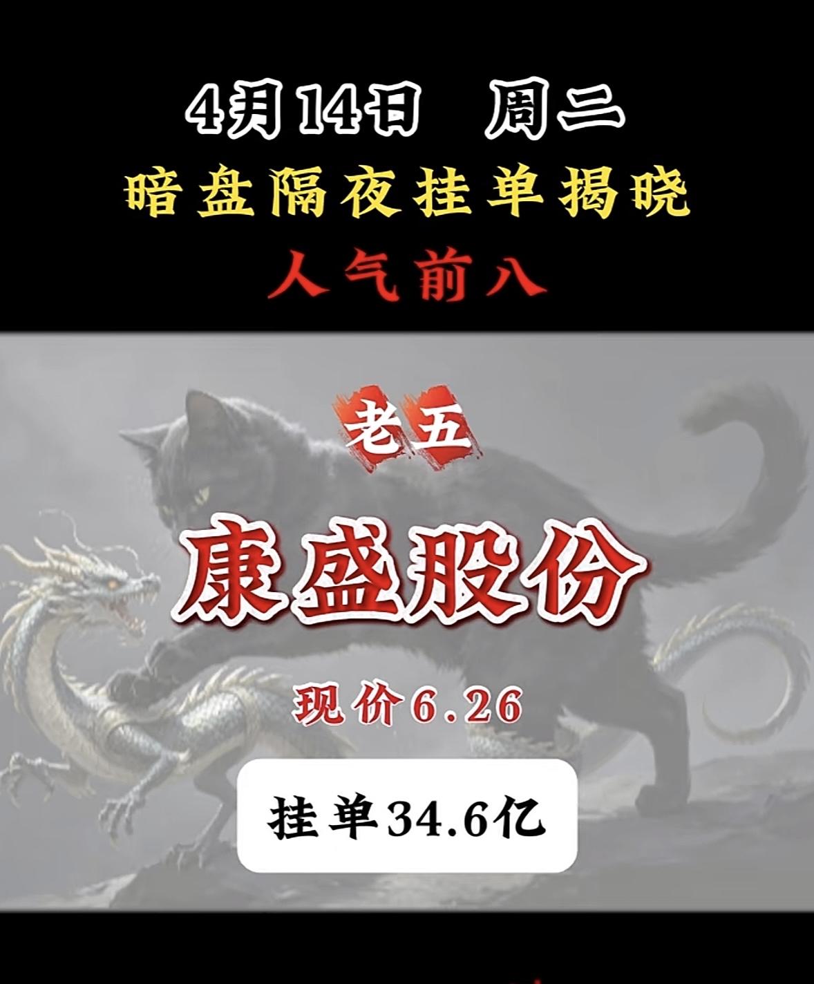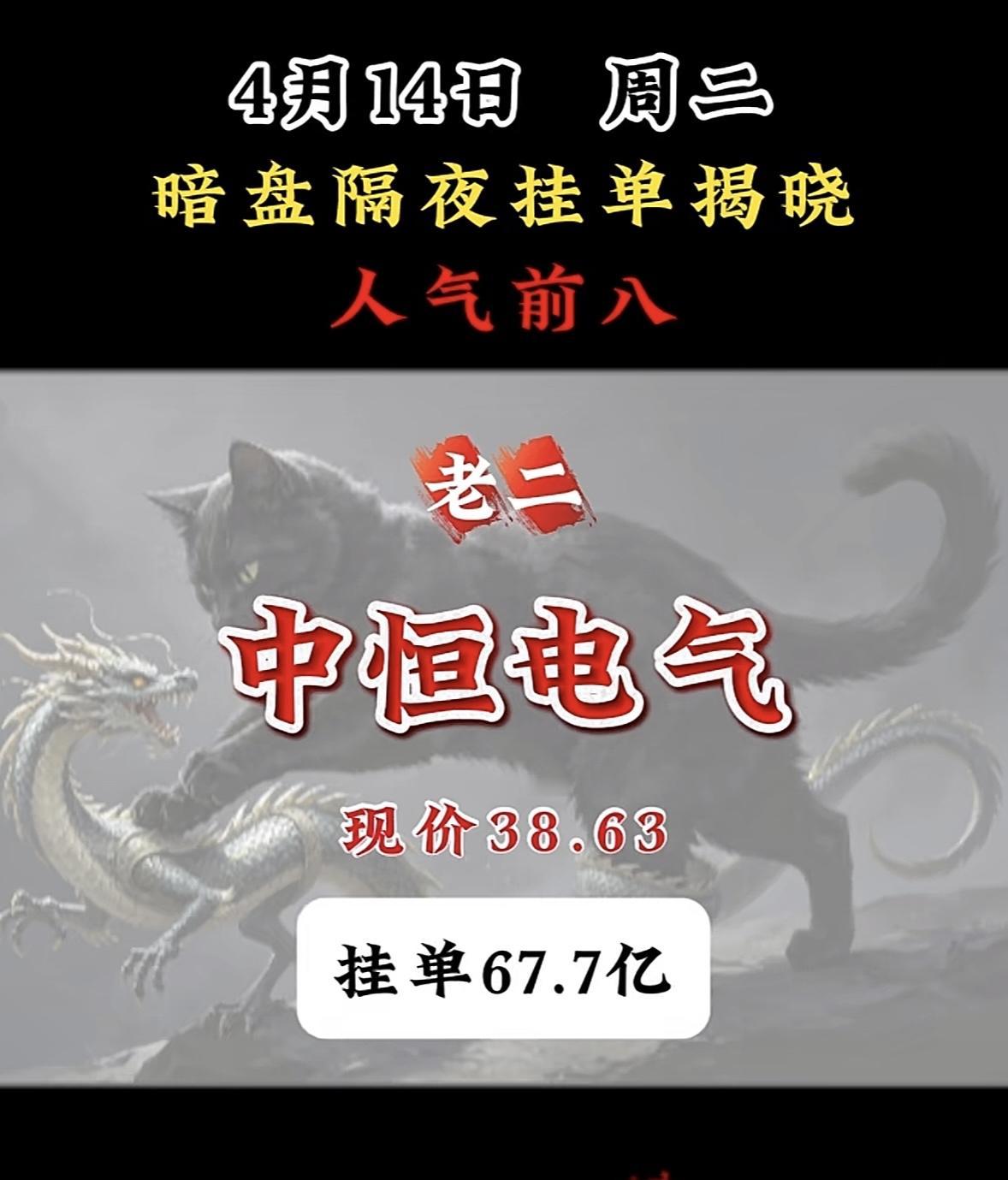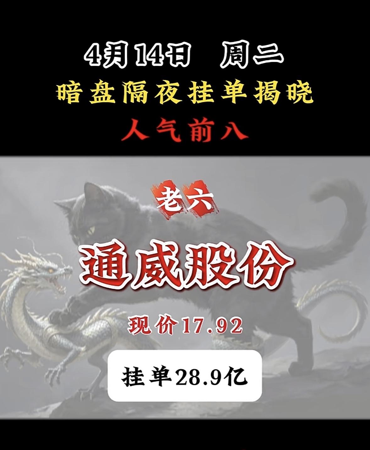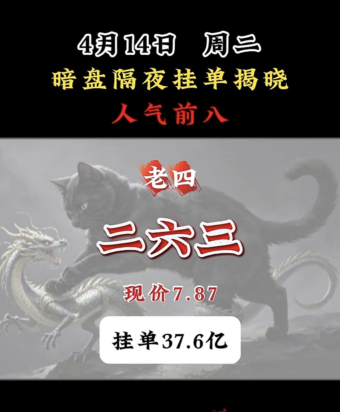 4月14日周二暗盘隔夜挂单排行榜出炉