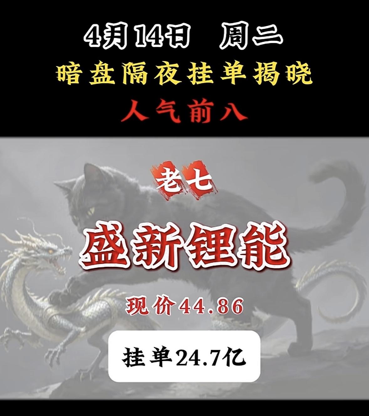 第七新锂能这事儿挺让人期待的,周二就要揭晓暗盘隔夜挂单结果了。现在它现价44.86,挂单就有24.7亿,感觉热度挺高。和其他股票比起来,这挂单金额不算小。像华菱线缆现价17.97,挂单71.38亿;中超控股现价5.84,挂单70.53亿。不过新锂能自身有它的魅力,也许揭晓后会给投资者带来惊喜。股票市场风云变幻,不知道新锂能后续会怎样发展,让我们拭目以待周二的结果吧。