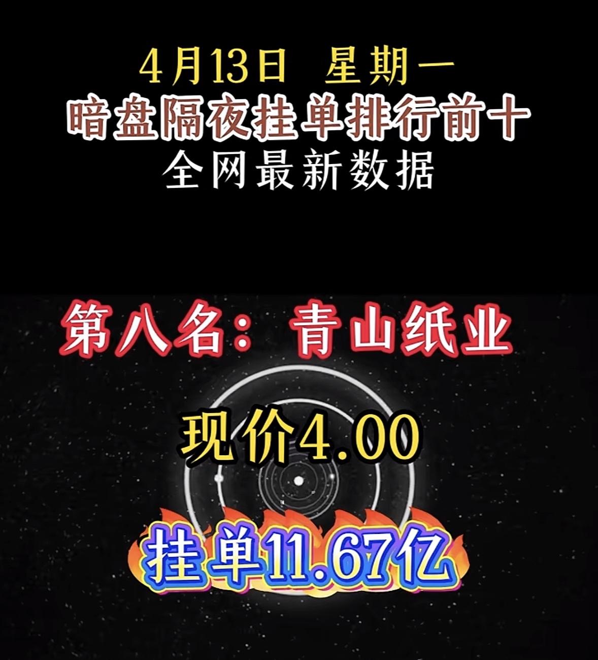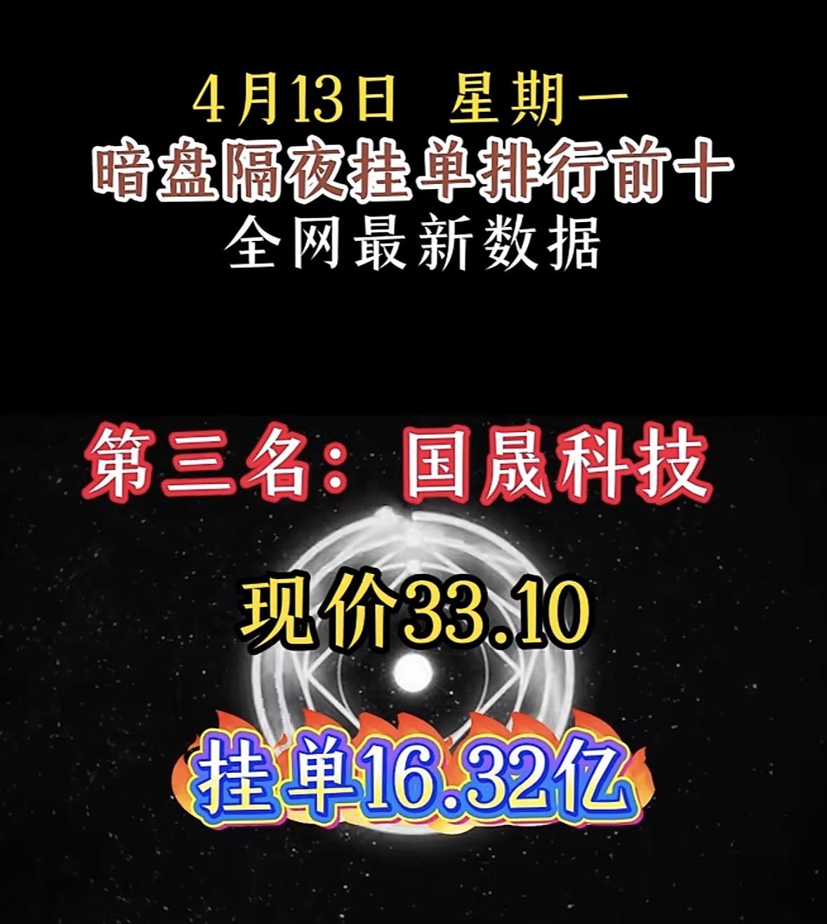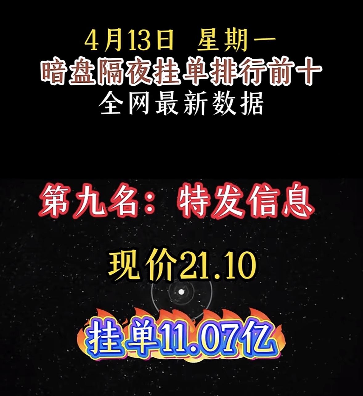 4月14日周二暗盘隔夜挂单排行榜揭晓