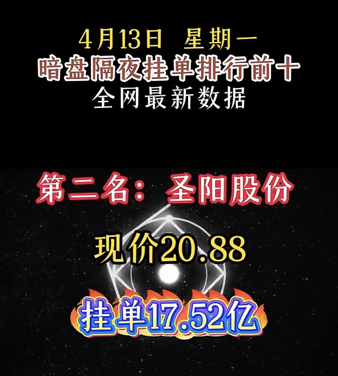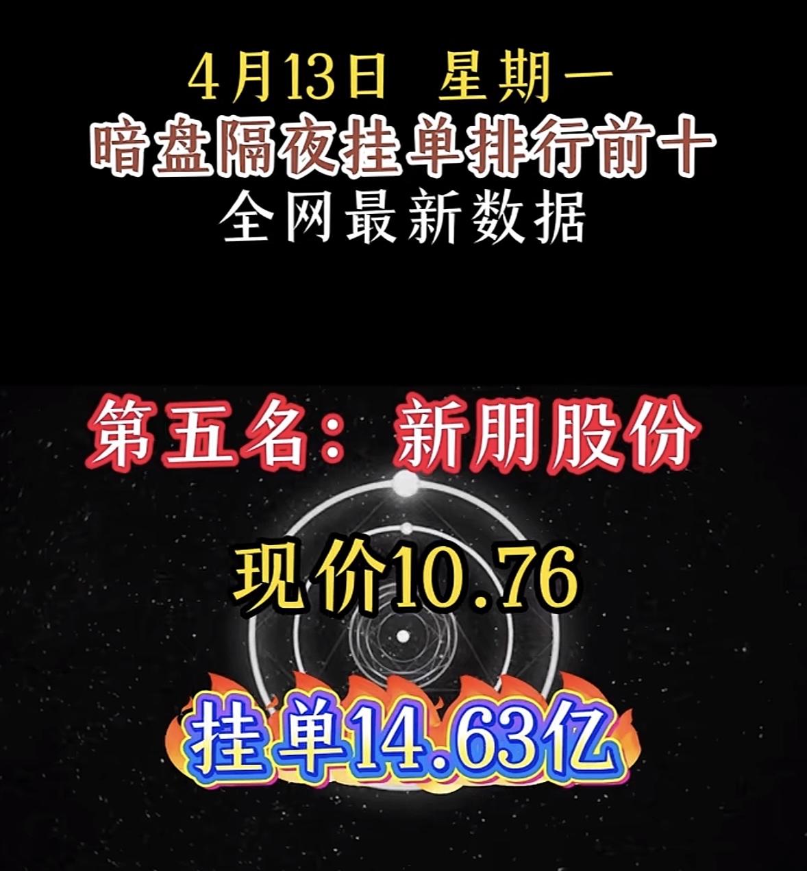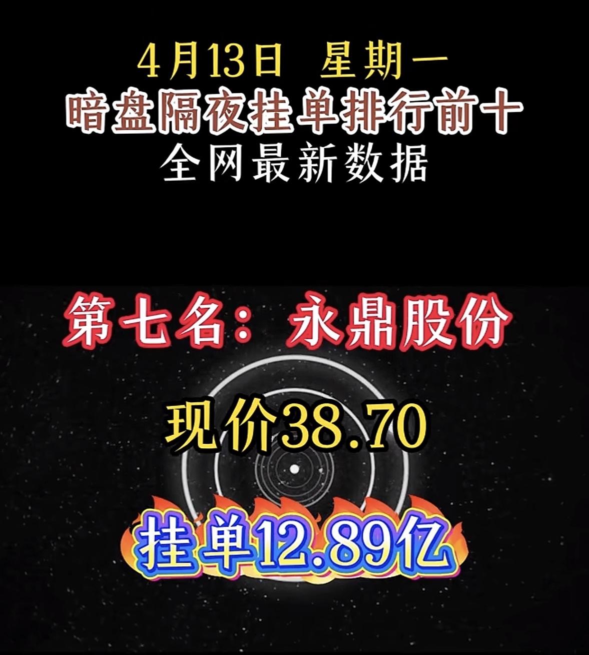 4月14日周二暗盘隔夜挂单排行榜揭晓