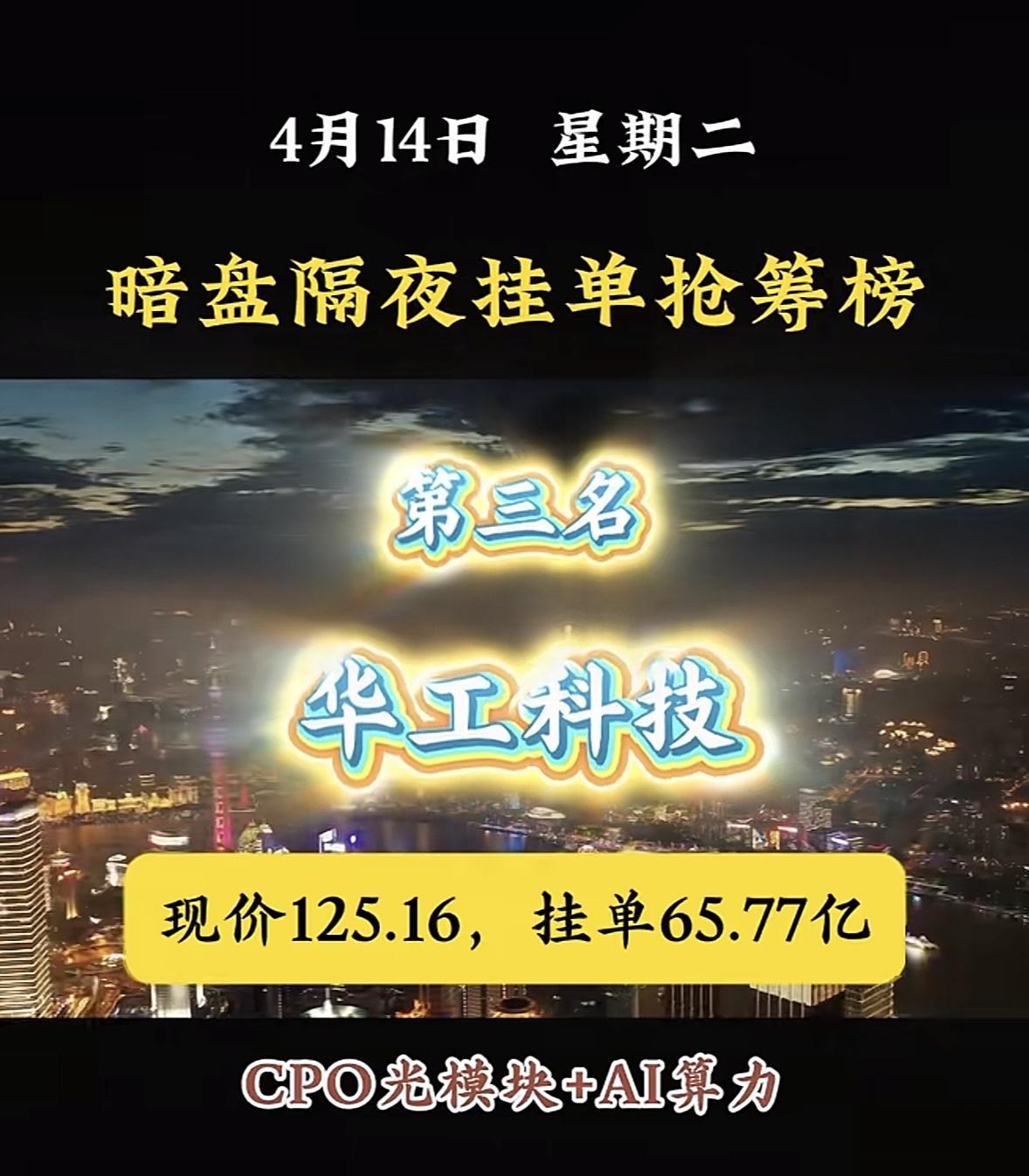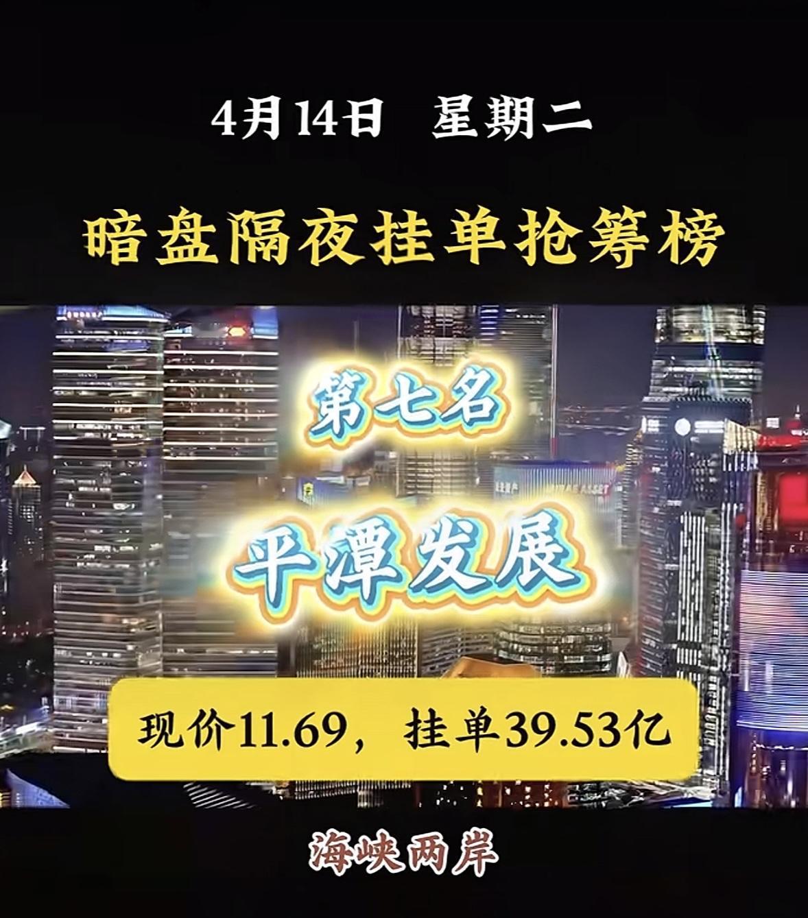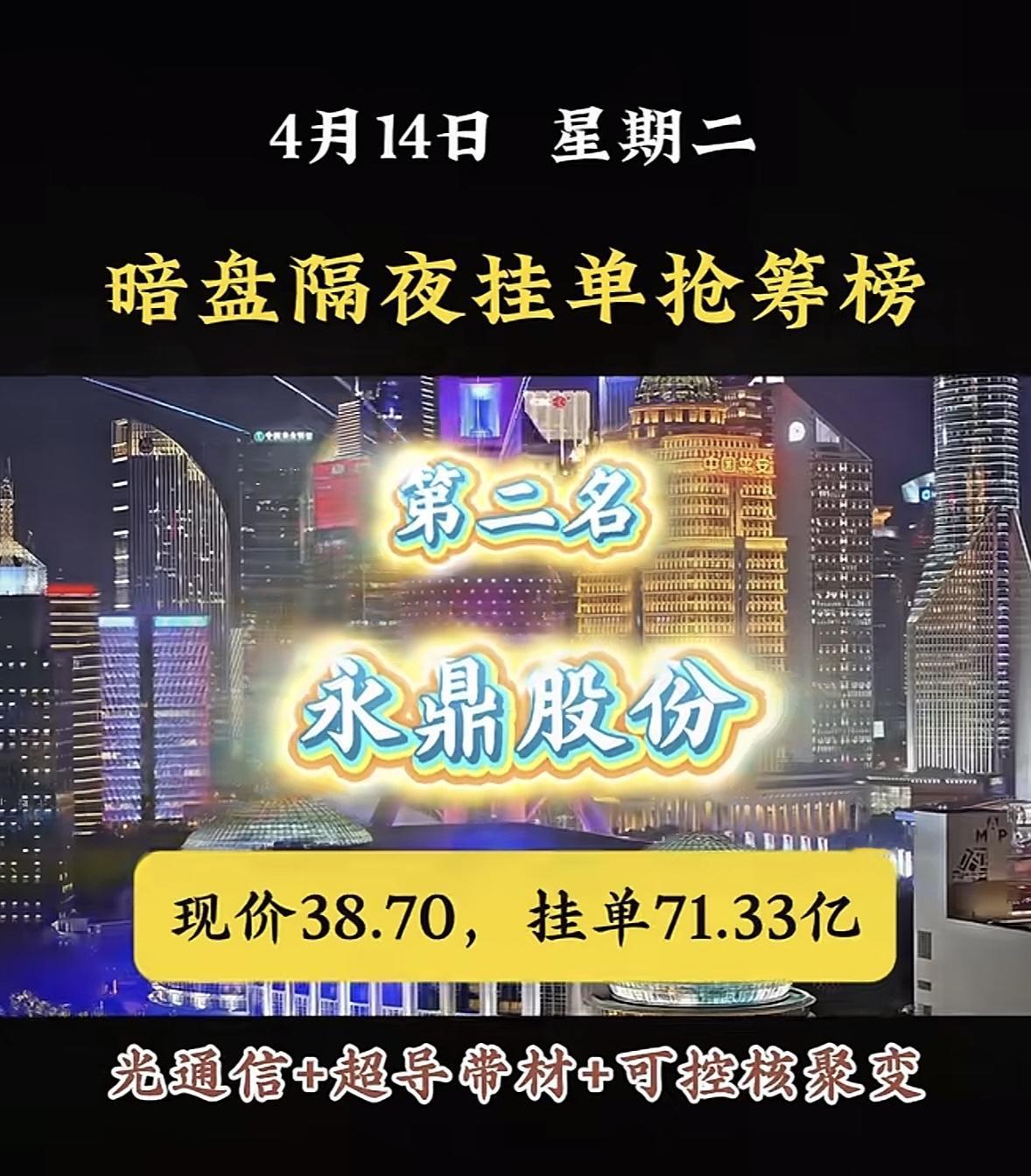 4月14日周二暗盘隔夜挂单排行榜揭晓