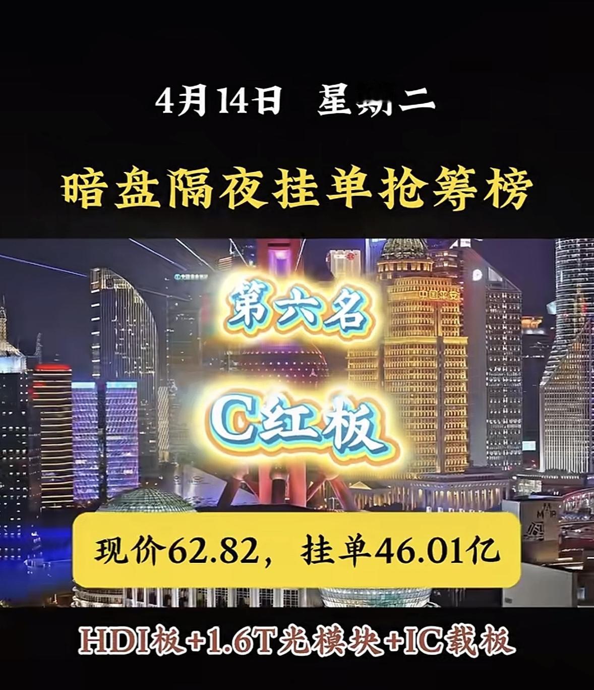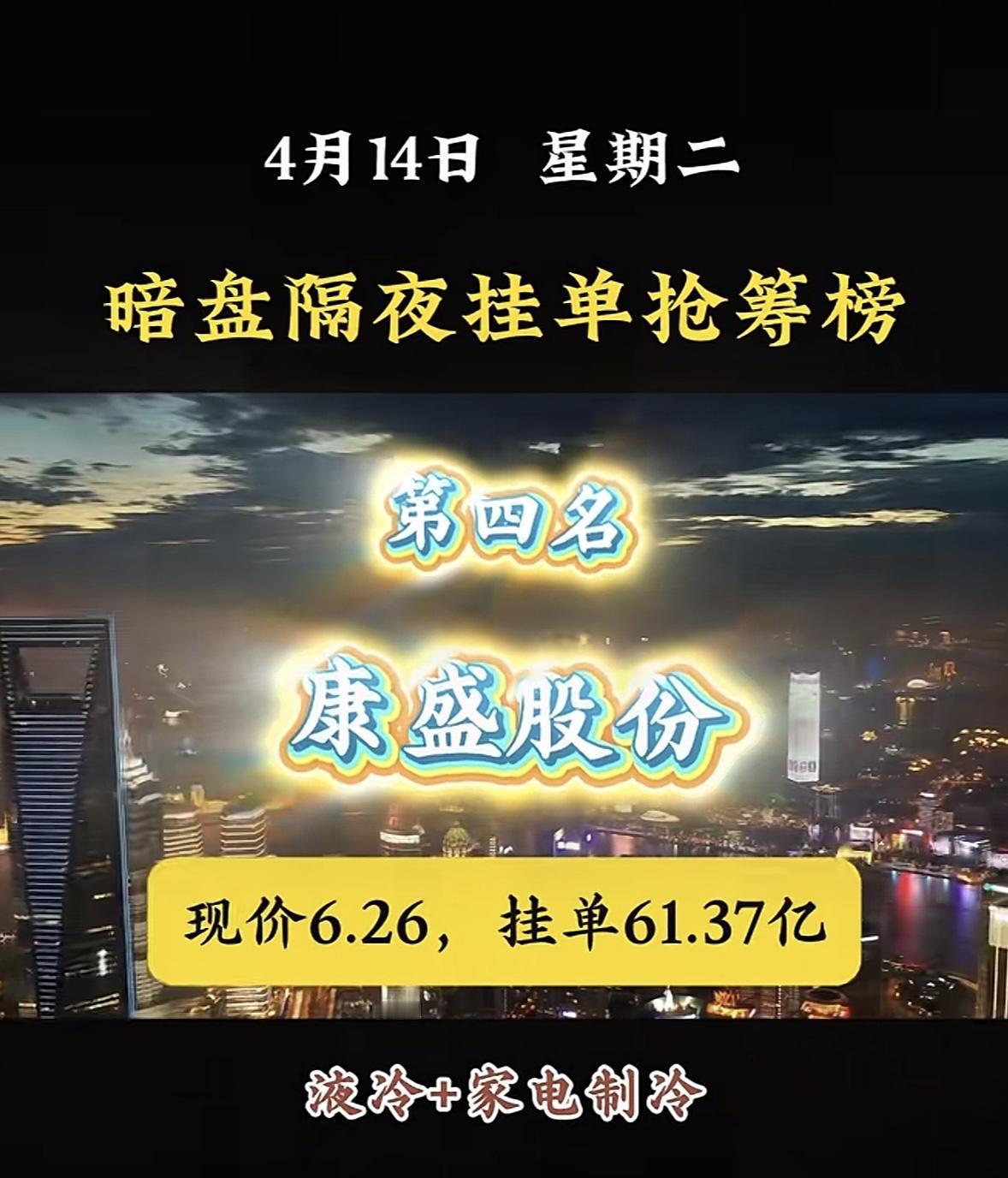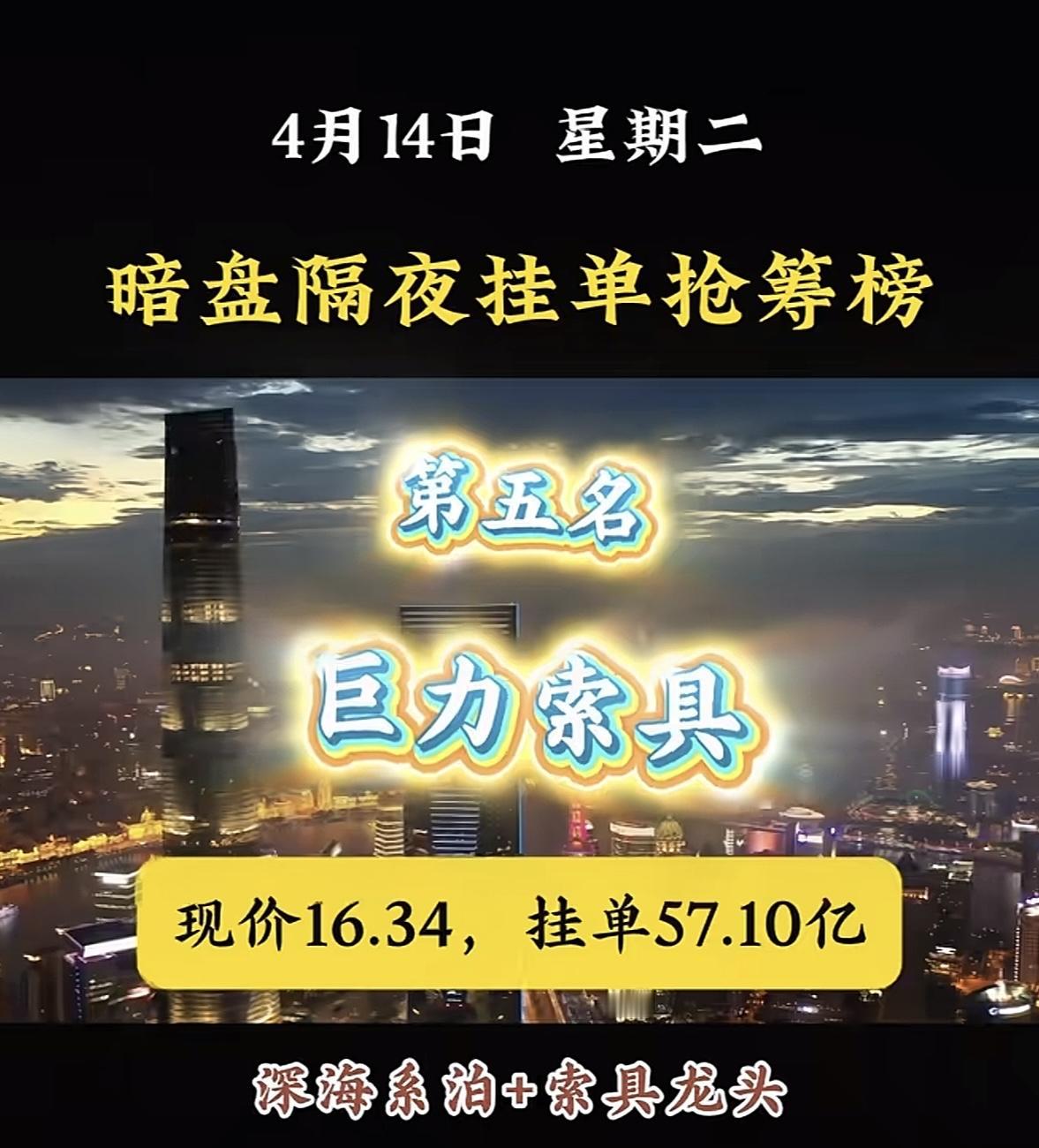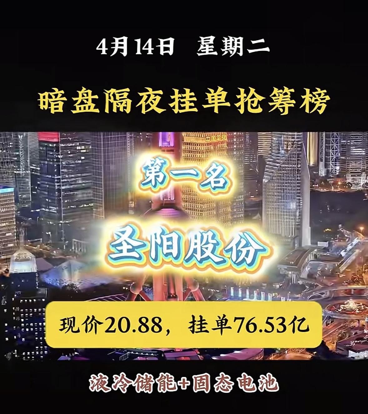 4月14日周二暗盘隔夜挂单排行榜揭晓