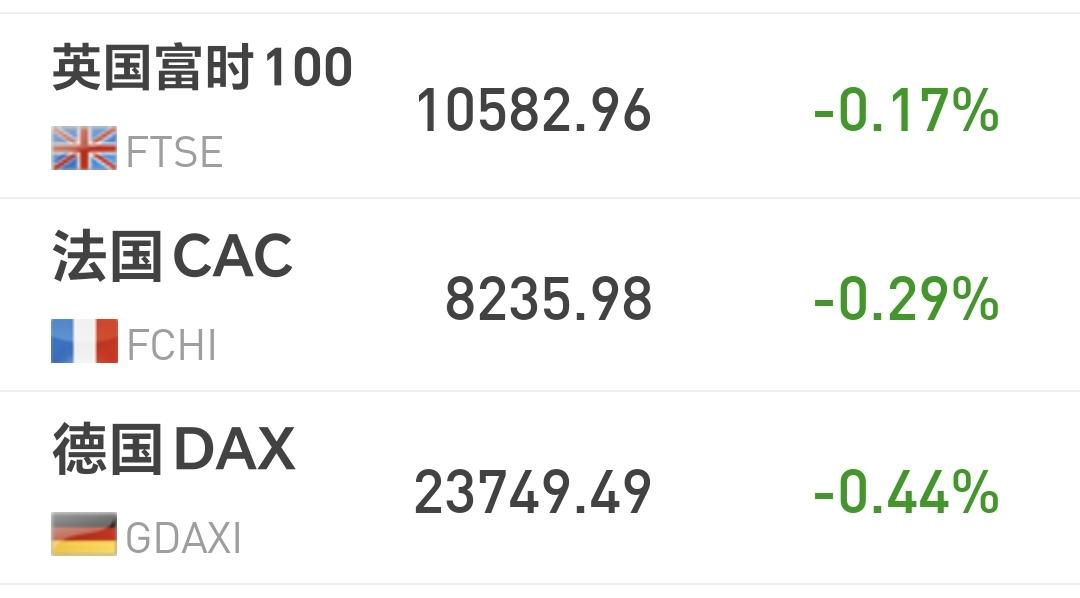 欧洲市场昨天晚上下跌,英国下跌了0.17%,法国下跌了0.29%,德国下跌了0.44%,下跌幅度都很小。