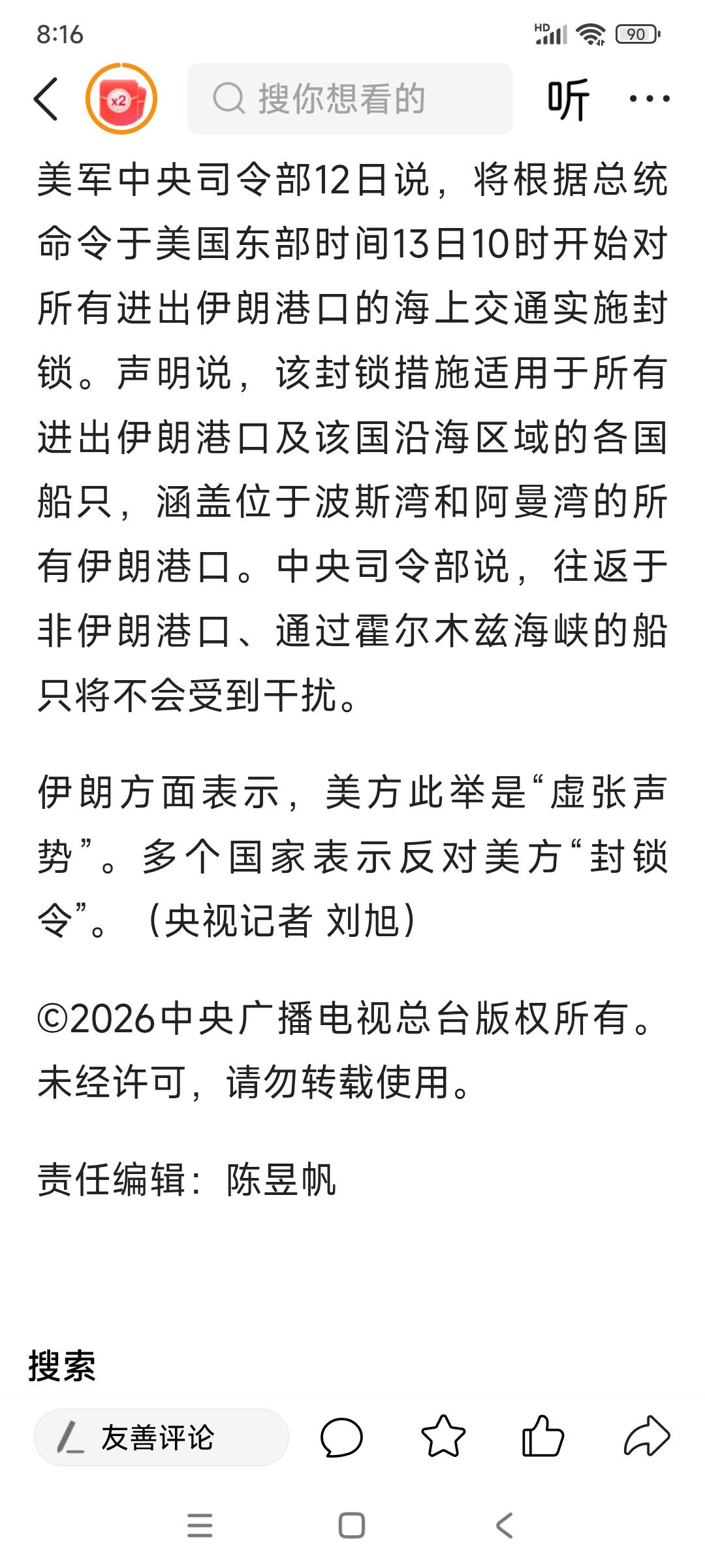 现在美国是不远万里跑到人家的家门口,而且针对所有船只,不分国籍,凭什么呀?