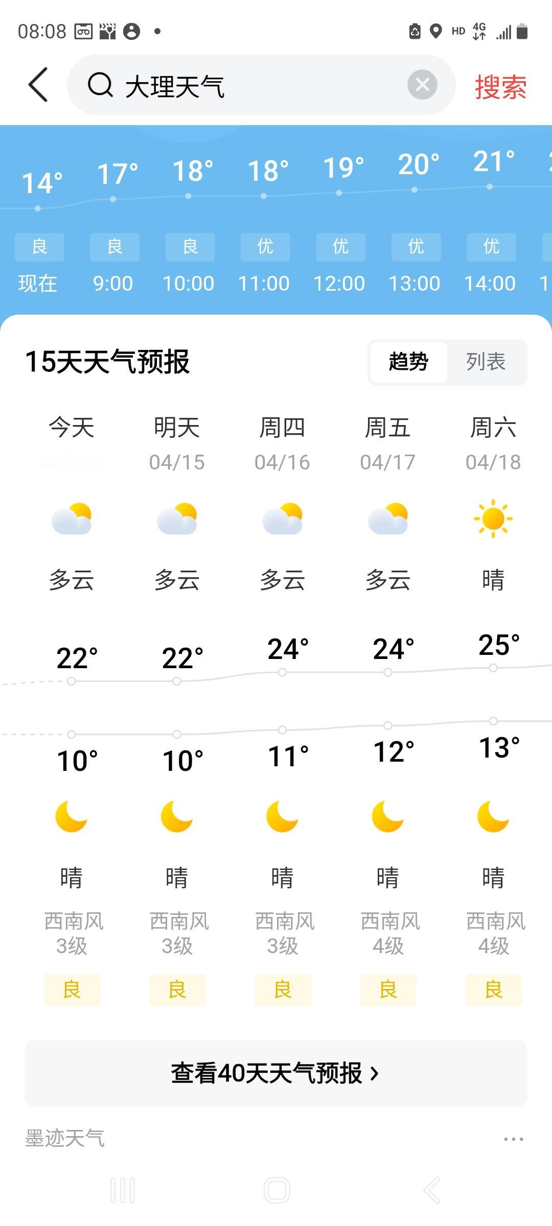 从北京到大理5天,我碰上两天轻霾,且预报大理未来几天连续二级良。见附图。