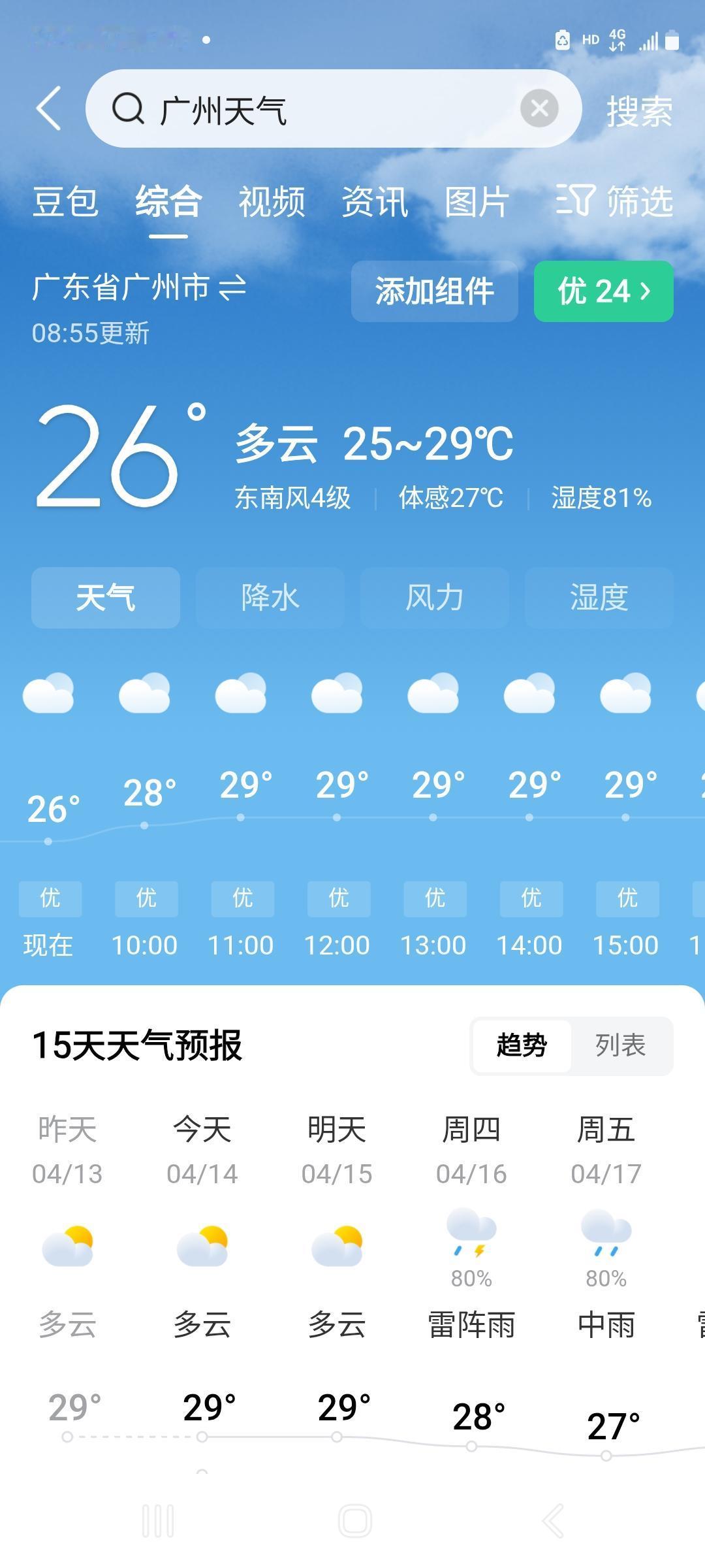 四周天边是厚灰的,大部分上空还是布满丰富云彩,阳光鲜亮,蓝天是浅蓝。
