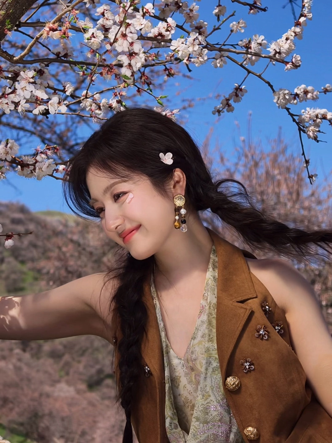 李兰迪李兰迪西部风造型李兰迪森系甜妹感李兰迪的西部风造型和森系甜妹感适配度满分麂皮马甲、草编帽自带旷野随性,双麻花辫、花瓣腮红又满是少女清甜。在漫山杏花林里,她笑眼弯弯,活力满满,好有春天的气息!